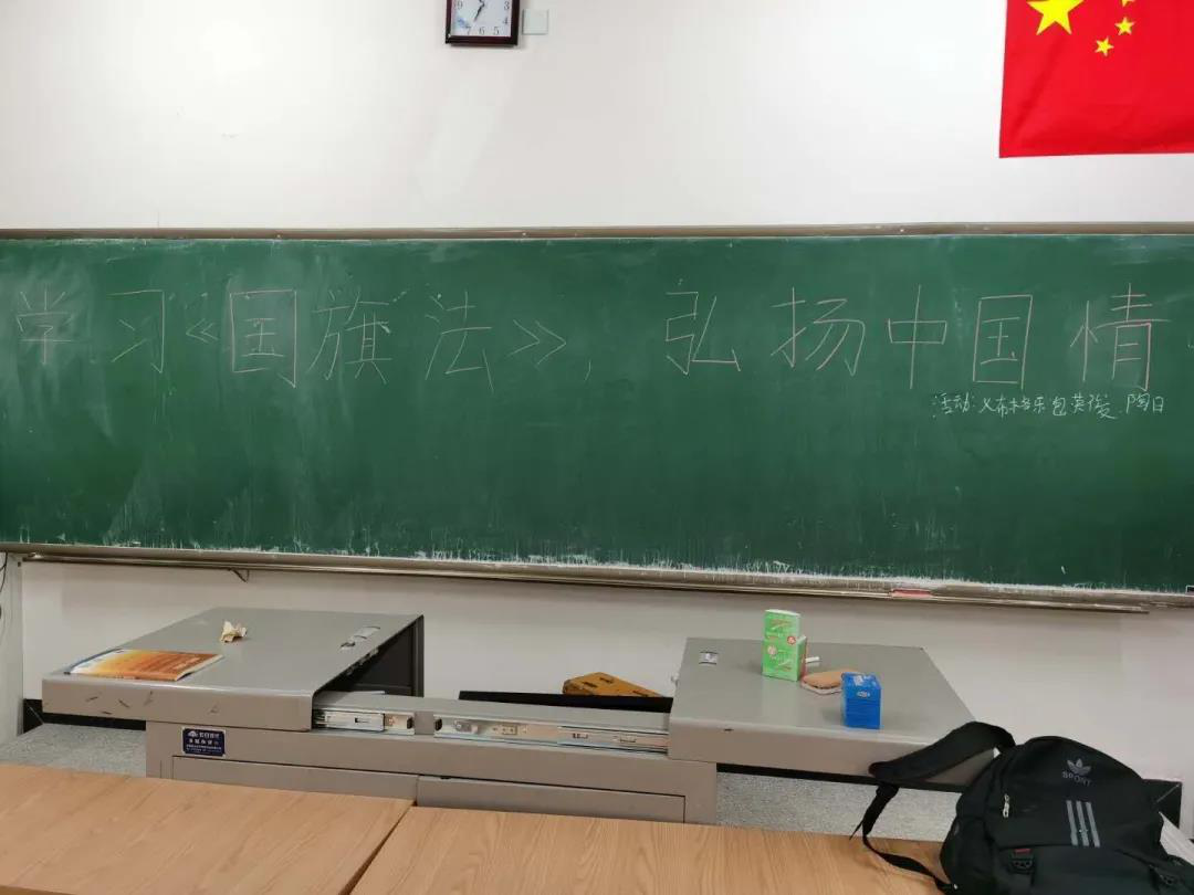 为了进一步促进青年员工树立尊重和爱护国旗的意识,弘扬爱国主义精神,化学工程系各班于2020年10月15日通过线上、线下相结合的方式开展了“学习《国旗法》,弘扬爱国情”主题班会。