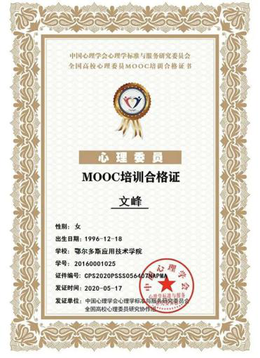 2020年4月16日-5月16日,化学工程系动员并组织11个班级的心理委员与心理信息员共计80人在“高校心理委员工作平台”上完成了心理委员的MOOC培训。