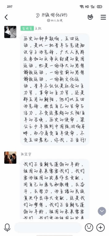 近日,化学工程系团总支和青年员工在线上开展学习“总书记五四寄语新时代青年”的活动。同学们积极讨论,感触颇深。