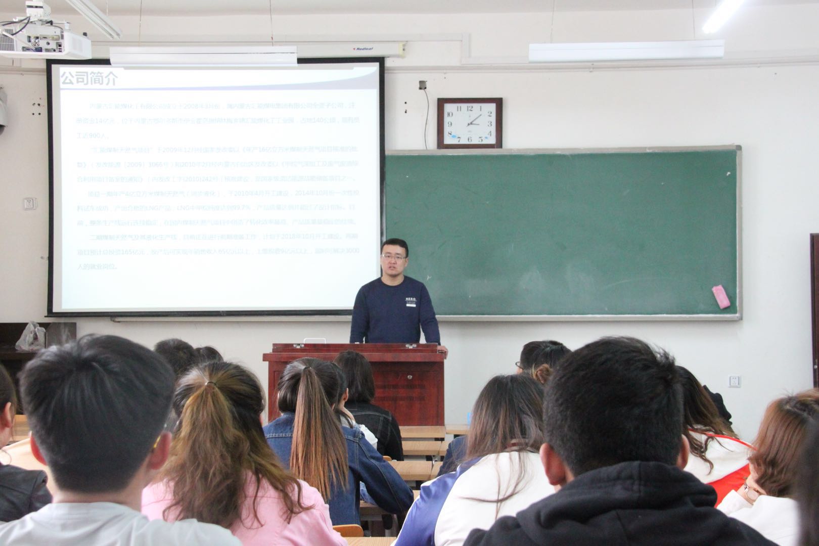 本次内蒙古汇能煤化工有限公司来公司招聘的专业为化工专业,其中细分化工运行操作工30人、热能动力操作20人、化验员5人、给排水运行操作工10人。共计40位大三员工参加了此次招聘的宣讲会,会上宣讲员对企业工作环境,薪酬待遇,招聘专业等做了详细的介绍,公司主任向同学们讲述就业之后的发展并鼓励大家要有吃苦耐劳的精神。最后解答了同学们针对升职、厂区条件等方面的问题。