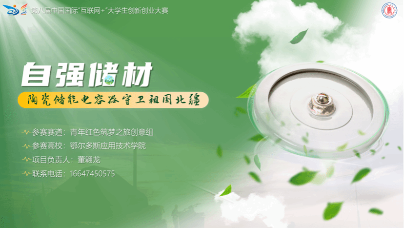 国家《十四五新型储能方案》明确要求,风电储能成本降低30%以上。内蒙古要求通过分散式储能项目建设,保障偏远地区用电需求。独立风电家庭储能市场容量全球千亿级,国内百亿级。项目针对铅酸铅碱电池功率密度低、疲劳寿命短的现实问题,研发了高性能的无铅陶瓷储能电容器,最终集成拉杆箱式的小型储能集装箱,助力牧民不受限地使用风电。团队以“自强储材”致敬前辈,到祖国最需要的地方建功立业,把西迁精神传承下去。自强储材——用陶瓷电容器离网储能,点亮祖国北疆!