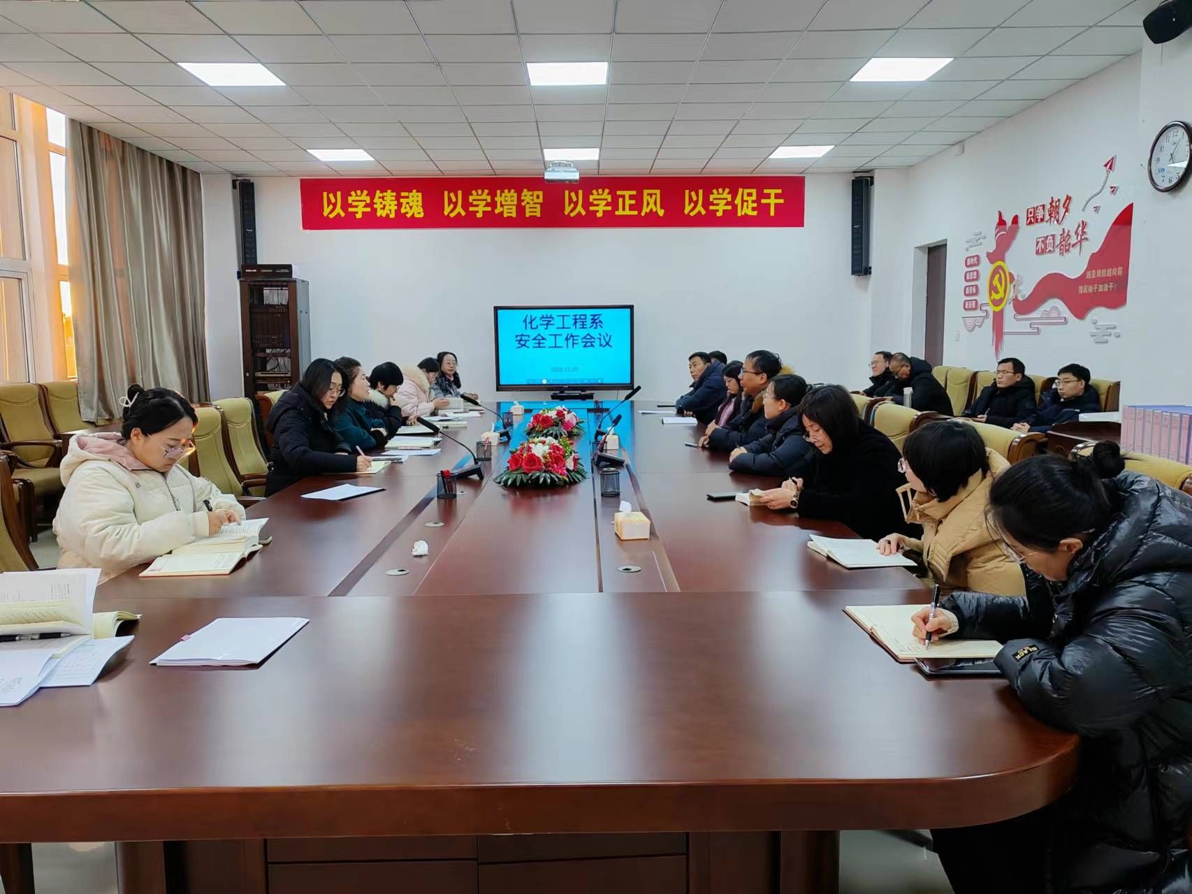 2023年12月20日,化学工程系党总支书记梁建华主持召开安全工作会议,化学工程系全体教师参加会议。会议要求,寒假在即,各实验室需进行安全大排查。各办、各教研室要强化风险意识,及时发现和消除隐患,严防各类安全事故发生。要对员工强调考试纪律,杜绝作弊。班主任要在元旦、春节等重要时间节点,通过主题班会、班级工作群、公众号等,线上向下多渠道开展假期交通安全、防火、防盗、防诈骗等方面的安全知识教育,强化员工安全防范意识,提高员工逃生避险、自救互救能力。
