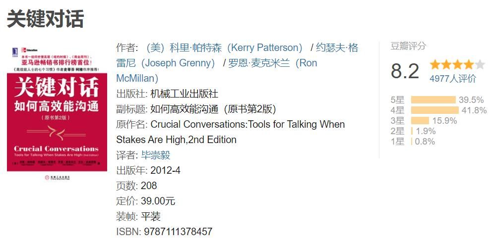 这本书解决的问题:详细剖析了人们在沟通上常见的盲点,并提供了许多立竿见影的谈话、倾听、行动技巧,辅以丰富的对话情境和轻松幽默的小故事,帮助读者以最迅速的方式掌握这些技巧。