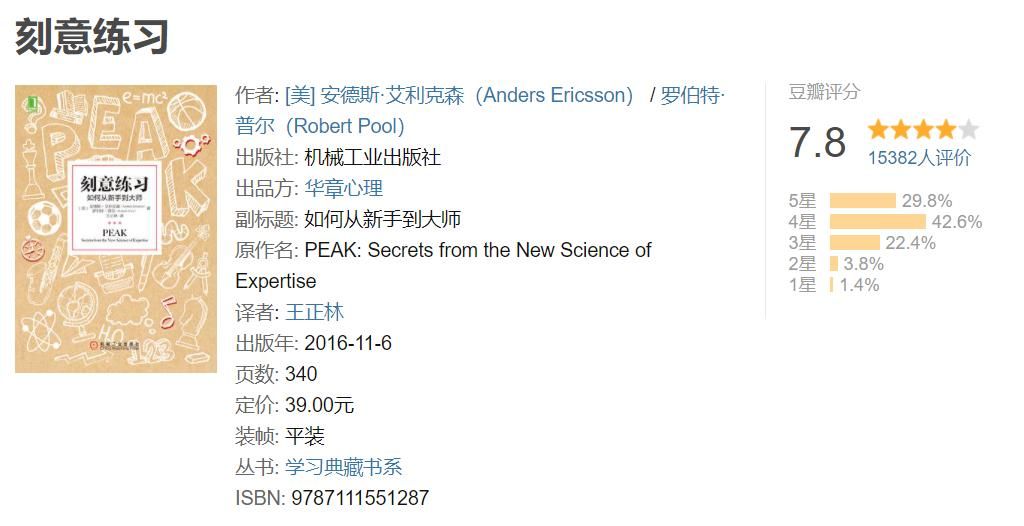 他发现,不论在什么行业或领域,提高技能与能力的最有效方法全都遵循一系列普遍原则,他将这种通用方法命名为“刻意练习”。
