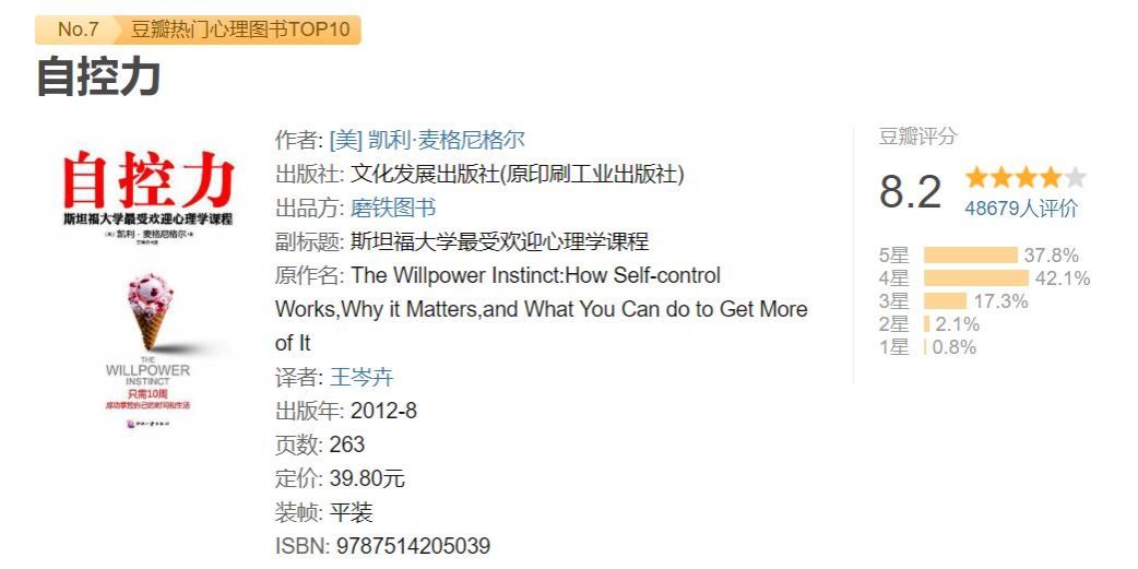 作者吸收了心理学、神经学和经济学等学科的最新洞见,为斯坦福大学继续教育项目开设了一门叫做“意志力科学”的课程,这本书正是在此课程基础上成书,讲述了什么是自控力,自控力如何发生作用,以及为何自控力如此重要。