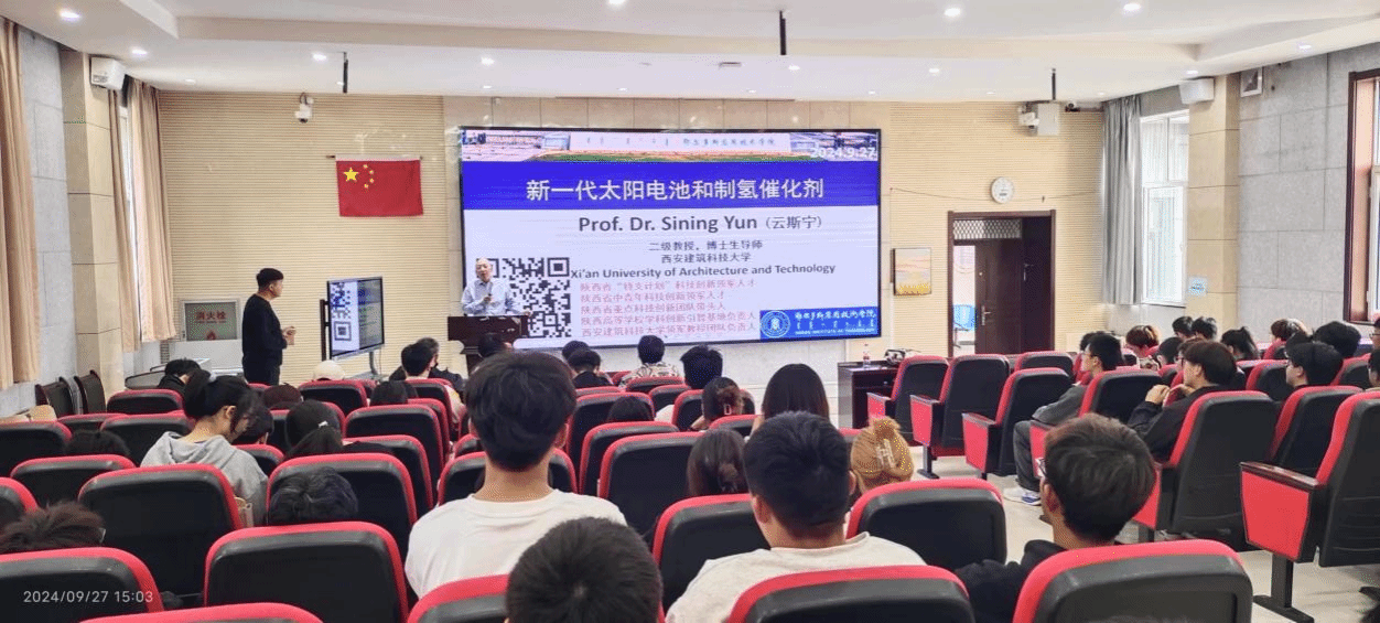 2024年9月27日,化学工程系诚邀西安建筑科技大学云斯宁教授在博学楼102室开展以“新一代太阳电池和制氢催化剂”为主题的学术讲座。学工办副主任张名、化学工程与工艺教研室主任王云飞参与了此次讲座。讲座结束后,化学工程系系主任吴珍带领云斯宁教授参观实验室,并展开交流活动。此次讲座为化学工程系师生提供了一个宝贵的学习交流平台,开阔了视野。