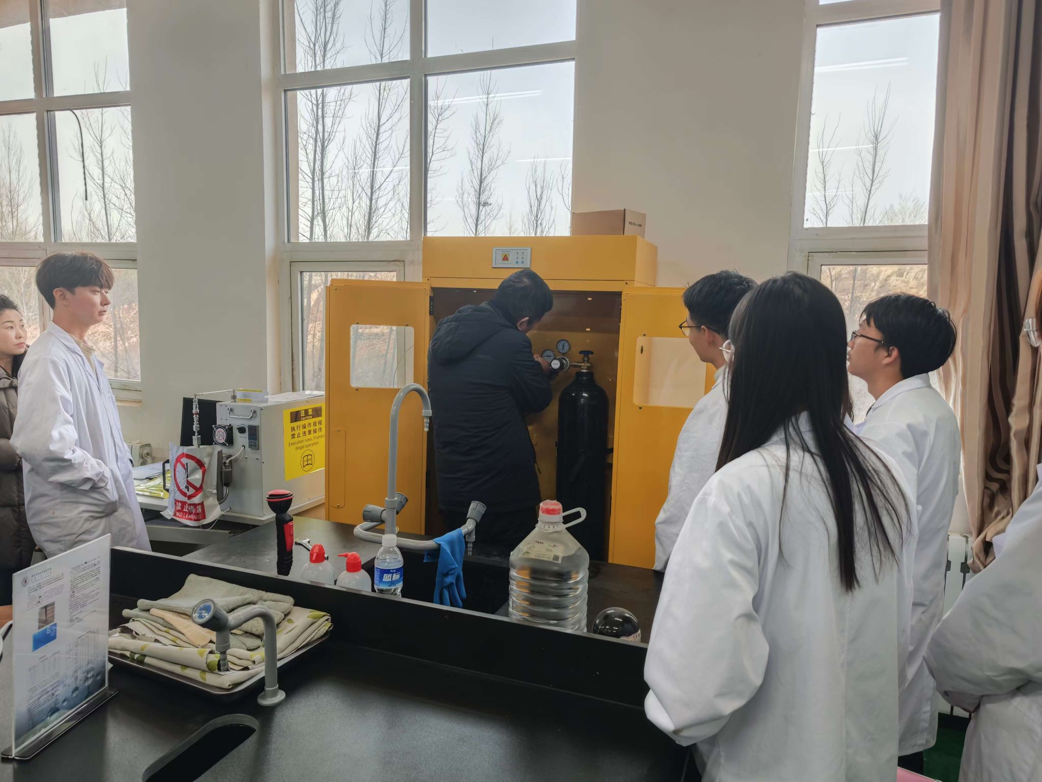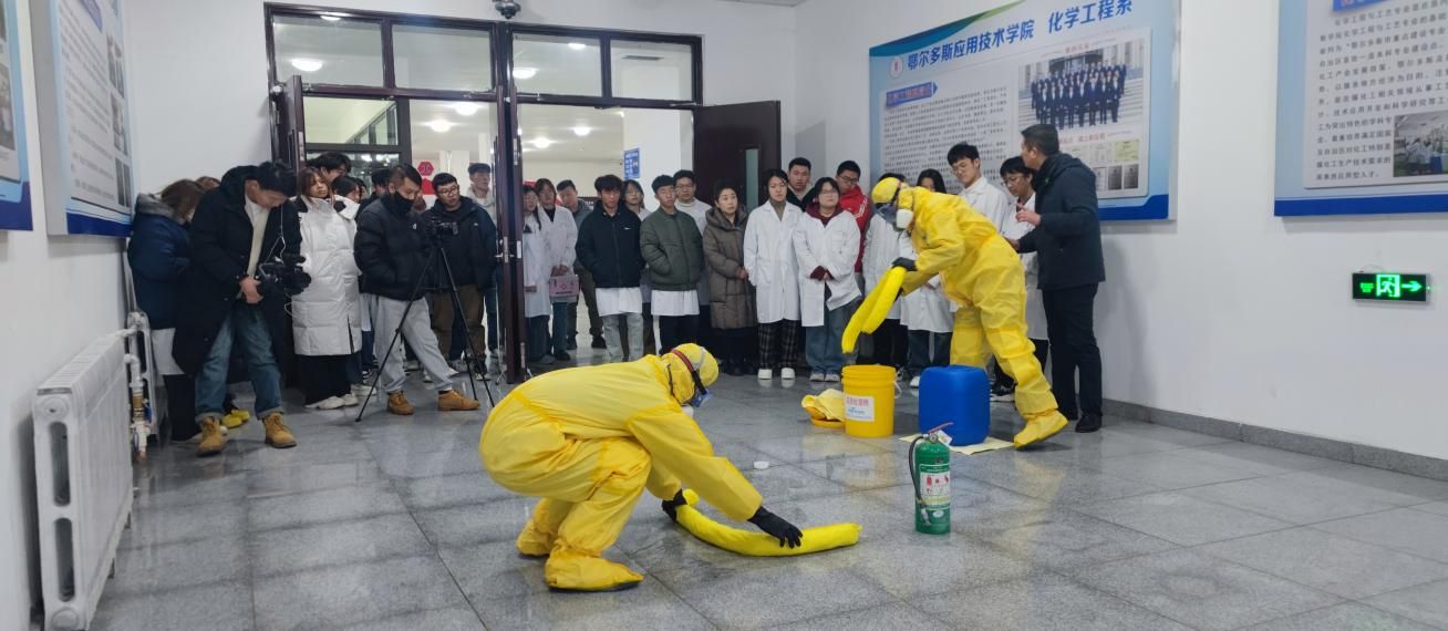 为进一步提升广大师生安全意识,提高实验室安全防范能力,落实 “安全第一、预防为主” 的实验安全要求,检验实验室应急处置能力,确保实验室运行安全,11月26日化学工程系开展了实验室安全应急演练。化学工程系安全领导小组成员、师生参加了演练。