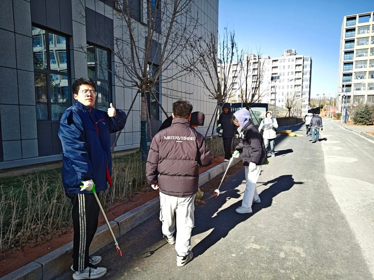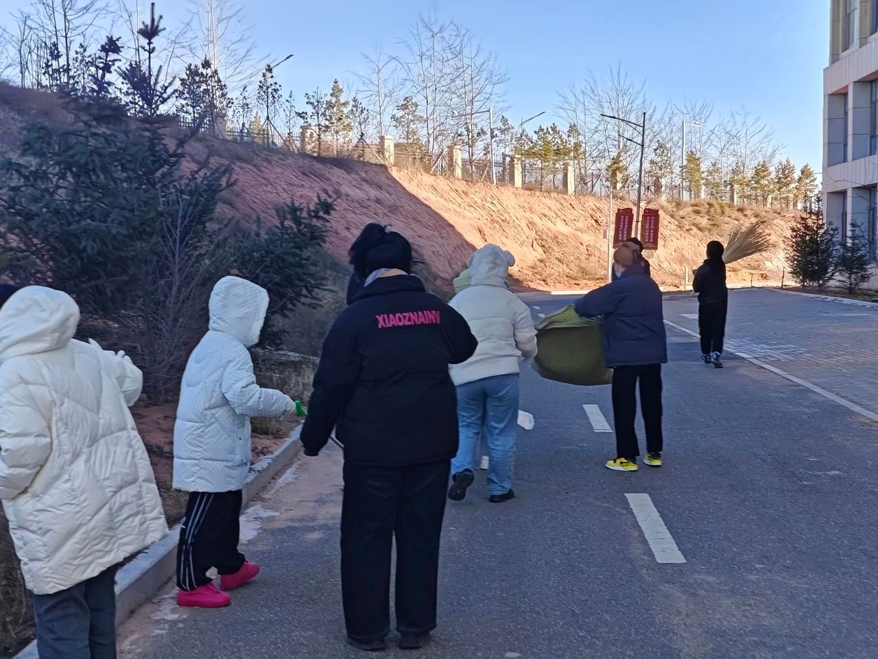 室外的卫生清扫工作同样如火如荼地进行。校园道路上,同学们挥动扫帚,清扫落叶与灰尘;草坪上,大家弯腰捡起散落的烟头。