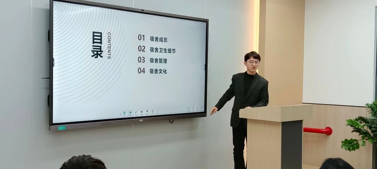 会议伊始,主持人为大家讲解了优秀宿舍的评选标准,即卫生情况、安全纪律情况以及相处融洽度等。随后,优秀宿舍代表成员依次上台发言,分享自己的宿舍日常、学习经验以及宿舍文化建设的独特之处。有的宿舍注重卫生整洁,通过制定严格的卫生值日制度,保持宿舍环境的清洁与舒适;有的宿舍则注重学习氛围的营造,大家相互督促学习,共同进步。