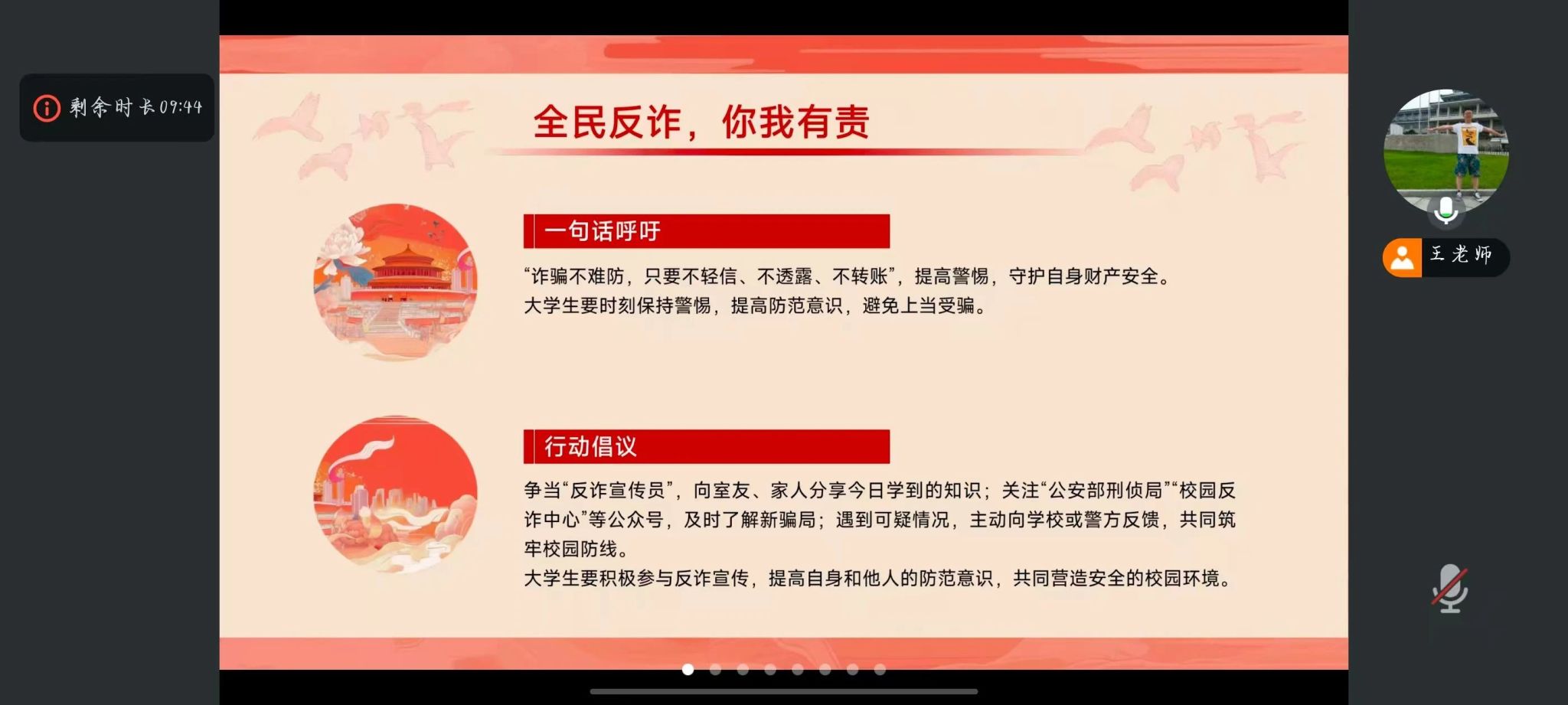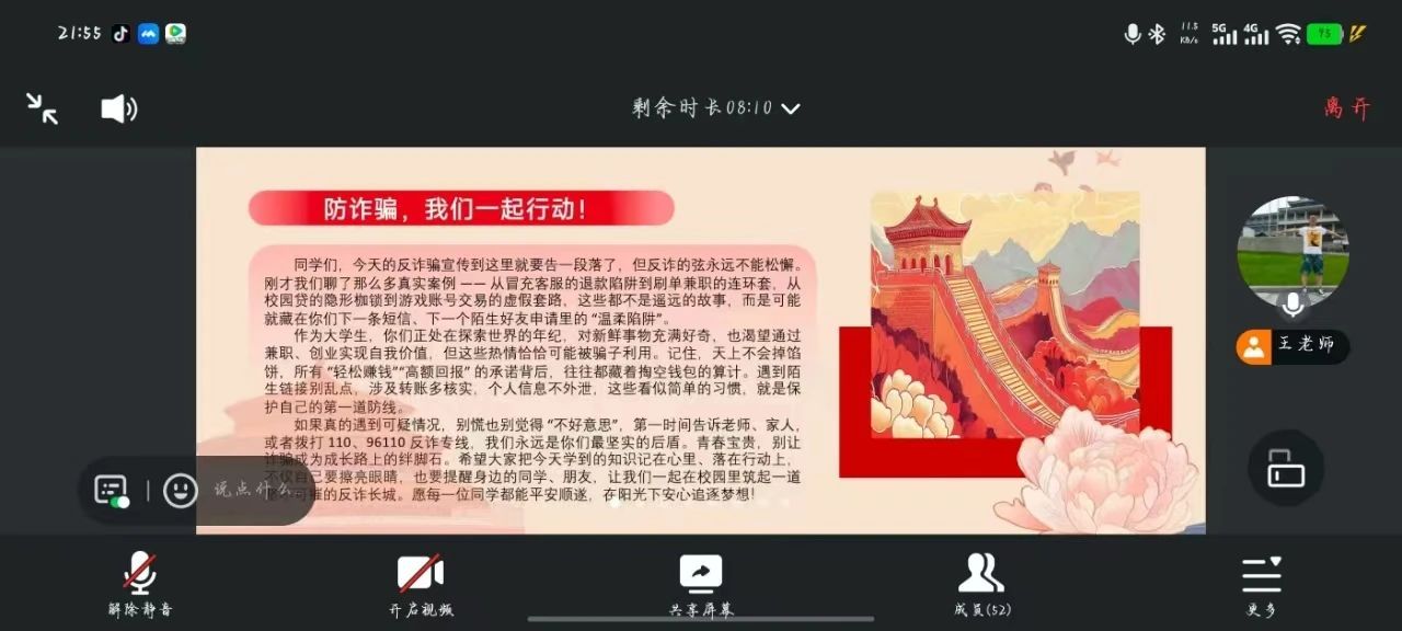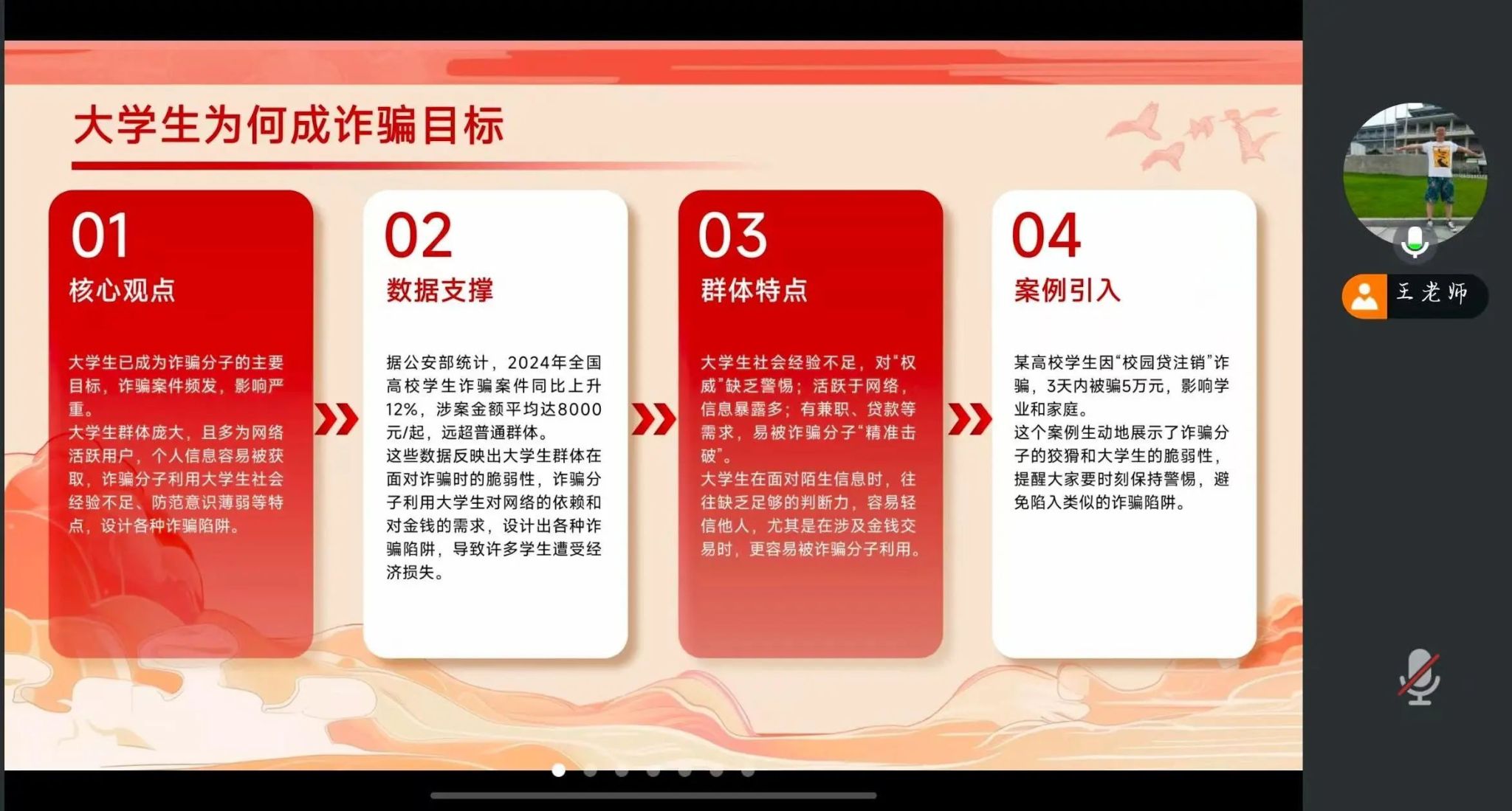 2022级各班围绕反诈主题召开了形式多样的主题班会。班会内容丰富,包括反诈案例分享、诈骗手段剖析、防范技巧讲解等。通过真实案例的展示,让同学们深刻认识到电信诈骗的严重危害,同时引导同学们学习如何识别诈骗手段,如虚假投资、网络刷单、冒充公检法等常见诈骗类型。