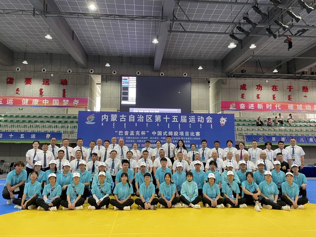 中国式摔跤是最古老的传统体育项目之一,1953年,被列入国家体育运动竞赛项目。在1959年第一届全国运动会上,中国式摔跤被列为正式比赛项目。在内蒙古自治区第十五届运动会中,中国式摔跤项目于2023年7月12日-17日在鄂尔多斯市蒙古族中学体育馆举行。化学工程系30名志愿者在指导老师的带领下参与本项目的志愿服务活动。