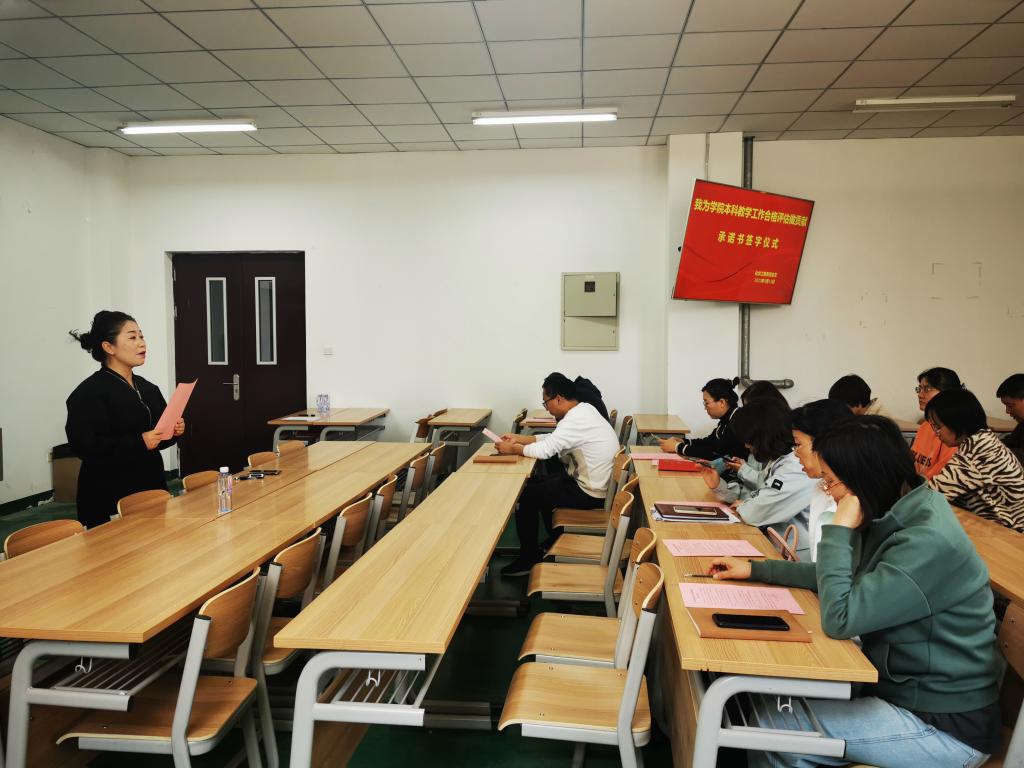 我为公司本科教学工作合格评估做贡献教职工承诺书的签订,进一步强化了责任意识、明确了责任分工,为迎接评估工作奠定了基础。