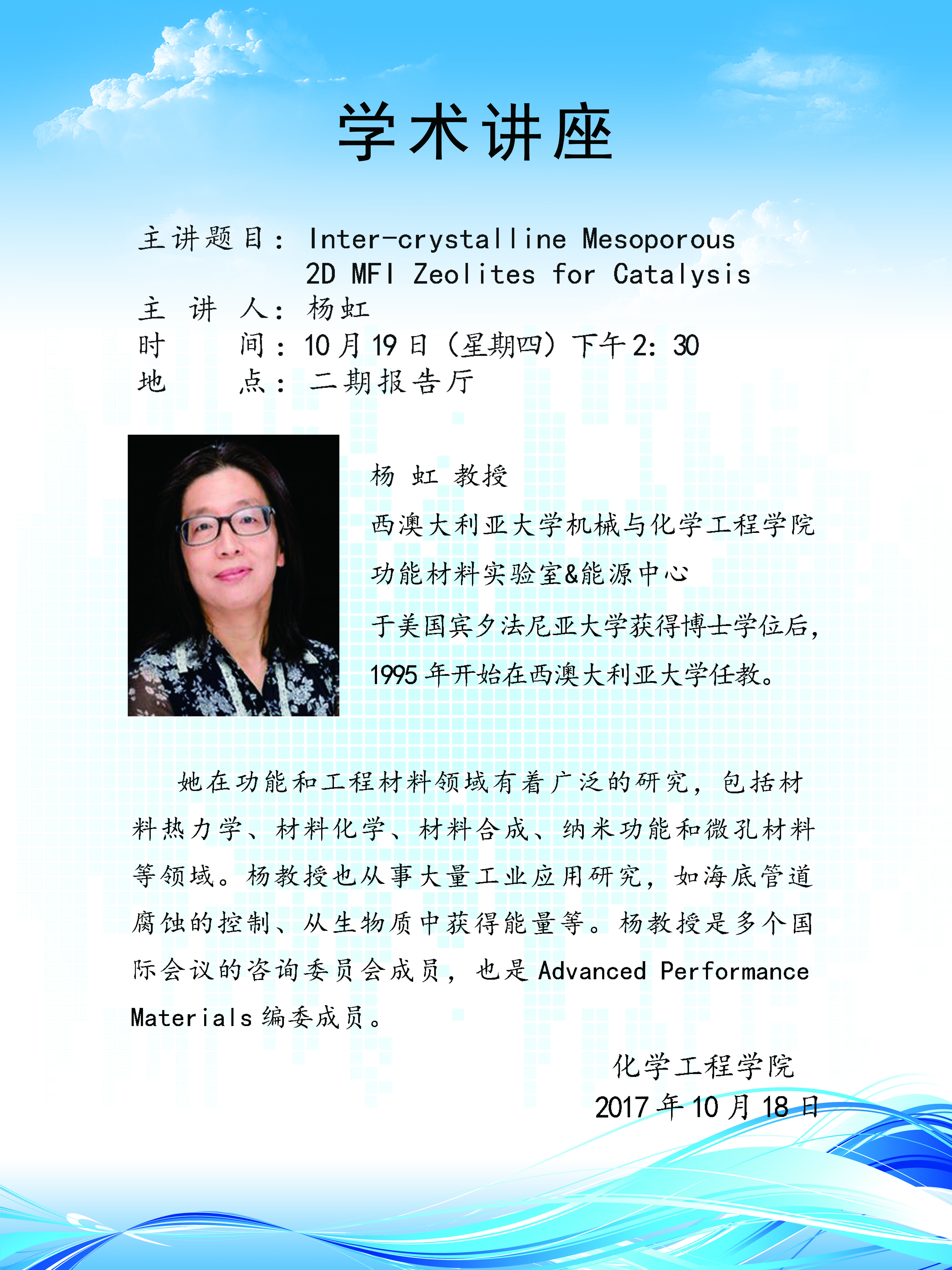 讲座题目:Inter-crystalline Mesoporous 2D MFI Zeolites for Catalysis