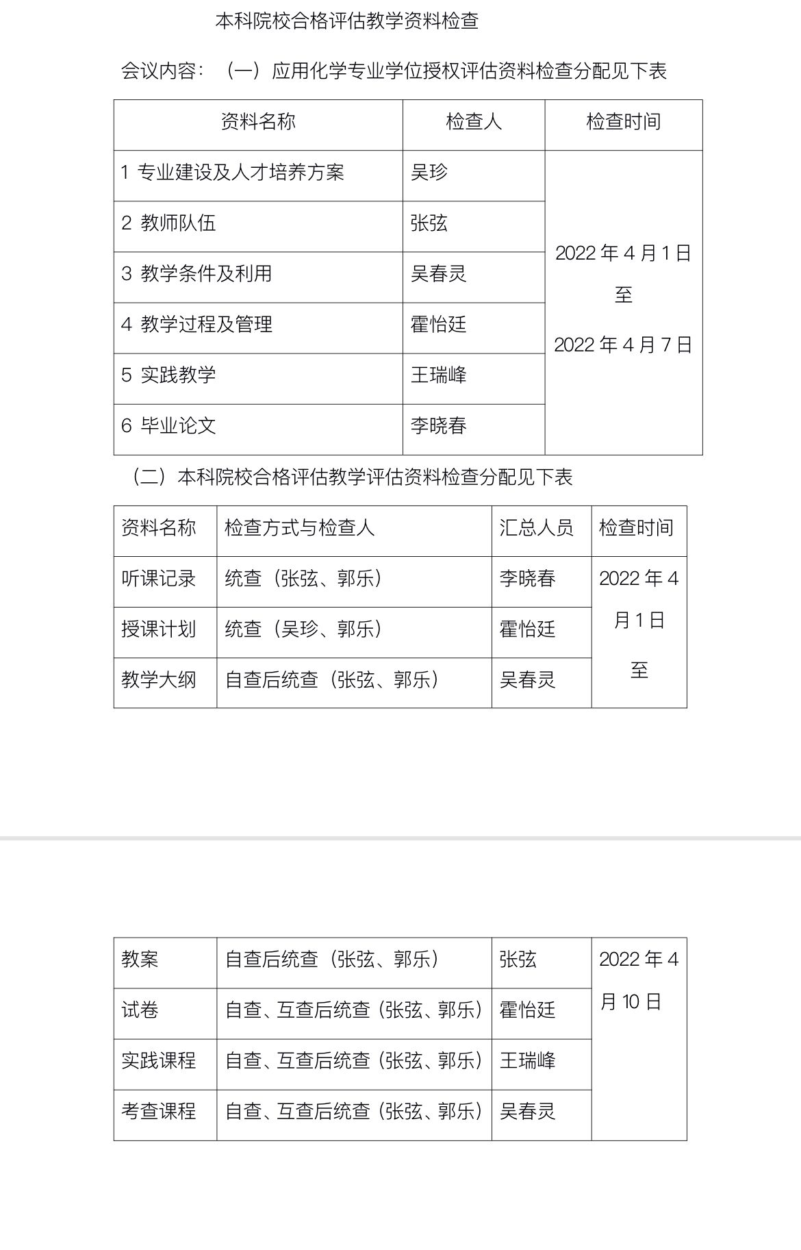 为进一步落实公司关于合格评估的工作要求,应用化学教研室全体教师于3月31日上午9:00在化学工程系225会议室对《304永利集团化学工程系本科教学工作合格评估任务分解书》、应用化学专业学位授权评估、应用化学专业实验室建设等事宜进行了详细解读与讨论,同时进行了任务梳理与分配。