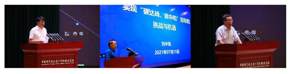 中国石油和化学工业联合会党委常委、副秘书长胡迁林在致辞中指出,“十四五”期间,碳达峰、碳中和将成为我国石油和化工行业转型升级的助推器或催化剂,我们要依靠科技创新,全面提升全行业绿色低碳发展的质量和水平,重点做好以下五个方面工作:一是大力推广先进高效的节能减排工艺,提高能源资源的利用效率;二是下大力气开发绿色低碳技术,降低碳排放强度。三是努力提高原料低碳化比例,实现源头减排。四是积极推动与氢能、风电、光伏等能源耦合发展,构建低碳能源体系。五是扎实开展二氧化碳捕集、封存与利用技术研究,为实现碳达峰、碳中和提供终极手段。刘中民院士作了题为《实现“碳达峰、碳中和”目标的挑战与机遇》的主旨报告。李灿院士作了题为《绿色氢能源及液态阳光甲醇》的主旨报告。