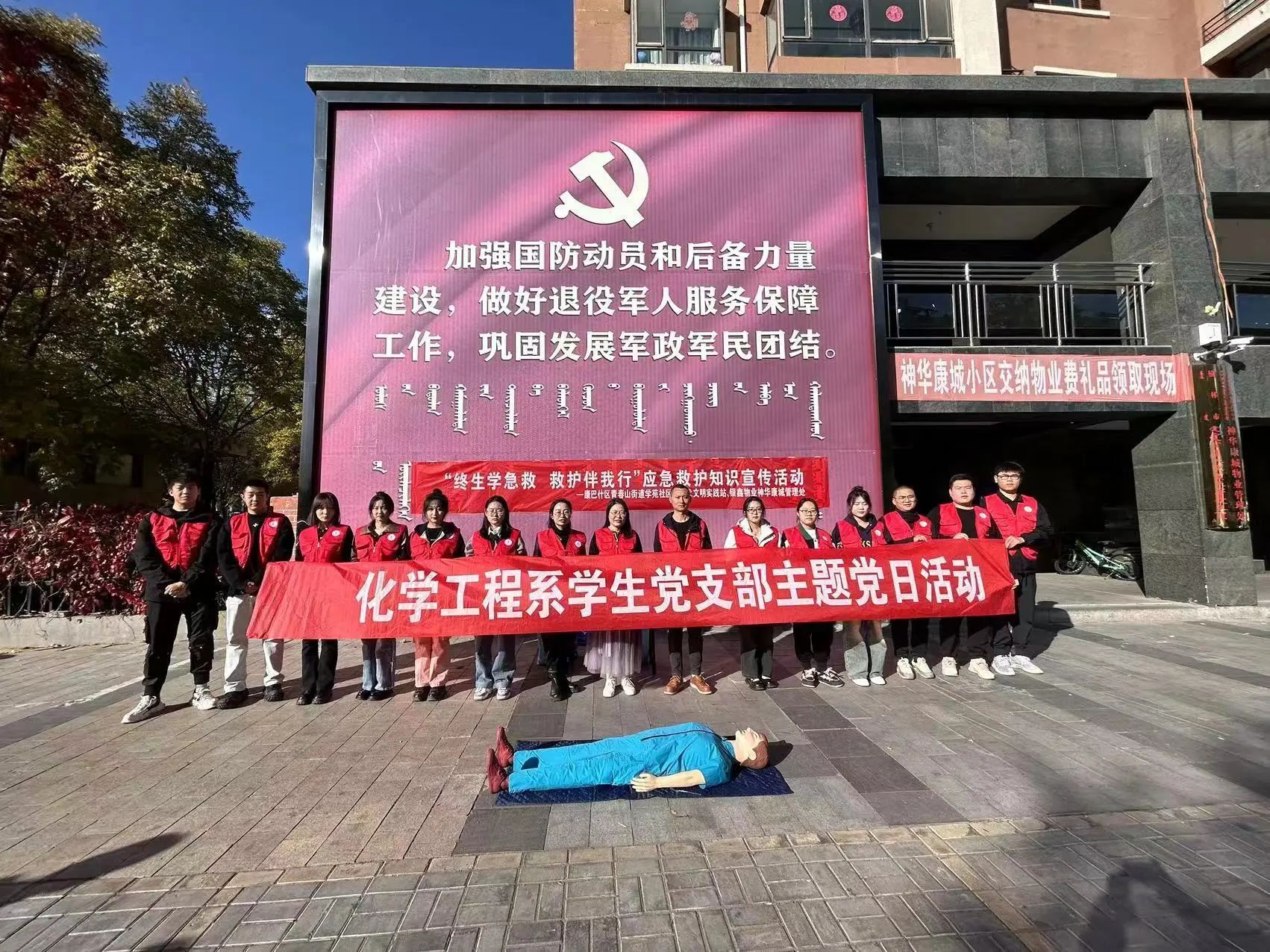 为普及急救知识,增强员工和居民应对突发事件和意外伤害的应急意识,切实提高员工和居民的自救互救能力,营造“人人学急救,个个会急救”的良好氛围,2023年10月24日下午化学工程系员工党支部联合康巴什学苑社区开展“终生学急救 救护伴我行”应急救护知识宣传活动。