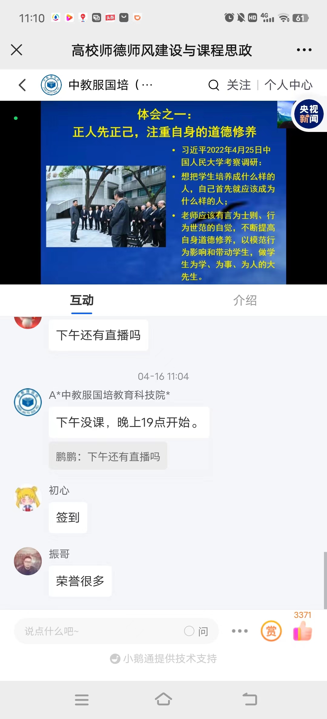 4月15、16日,全体教职工参加了《新时代高校教师职业行为准则解读》、《新时期高校教师专业素养与品格》、《高校师德师风建设与课程思政》、《黄大年精神与黄大年团队、吉林大学黄大年团队建设经验》课程的在线培训,增强了对《新时代高校教师职业行为准则》、师德师风建设重要性的认识和理解,明确了高校师德师风建设与课程思政的关系,强化了团队合作精神公司产品理念。