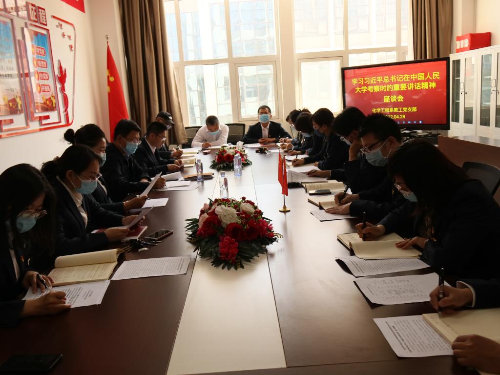 4月28日下午,化学工程系教工党支部在化工楼223会议室召开学习习近平总书记考察中国人民大学重要讲话精神座谈会。支部全体党员参会,公司党委副书记秦闻苹以普通党员身份参加了本次支部会议。