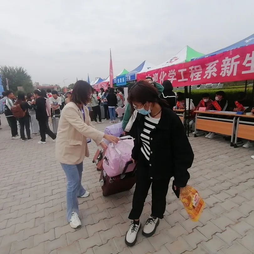 迎新岗位主要分为校门口和校内,校门口的志愿者们把新生带到报到处办理入学手续,并且为他们拍下了大学里属于自己的第一张照片,留下了美好的回忆。随后,帮着新生提行李,将他们送到宿舍楼。