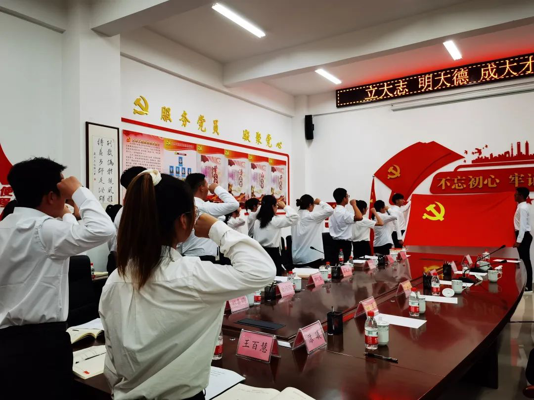 活动最后,全体党员庄严举起右手,重温入党誓词,表达了共产党员的忠诚情怀;同唱《没有共产党就没有新中国》,表达了坚定理想信仰的豪情。