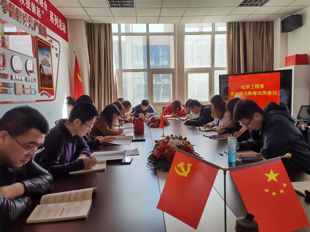 3月23日下午,化学工程系在化工楼223会议室召开党史学习教育动员大会,深入学习贯彻习近平总书记在党史学习教育动员大会上的重要讲话精神,对全系开展党史学习教育进行动员部署。系党总支书记梁建华作动员讲话,全体党员参加会议。