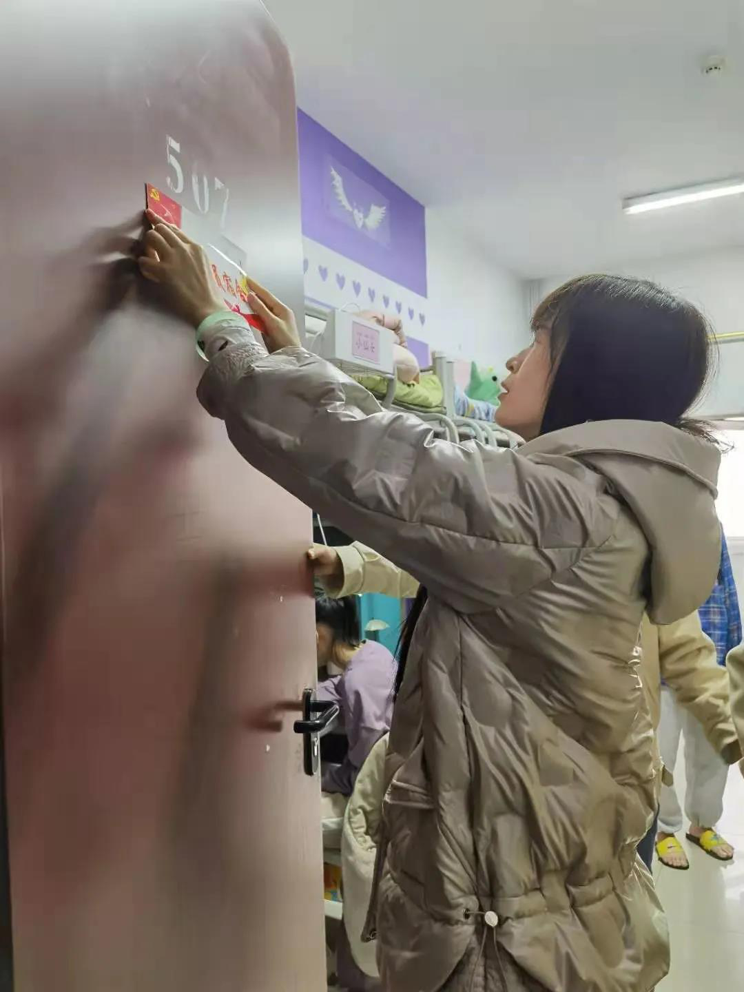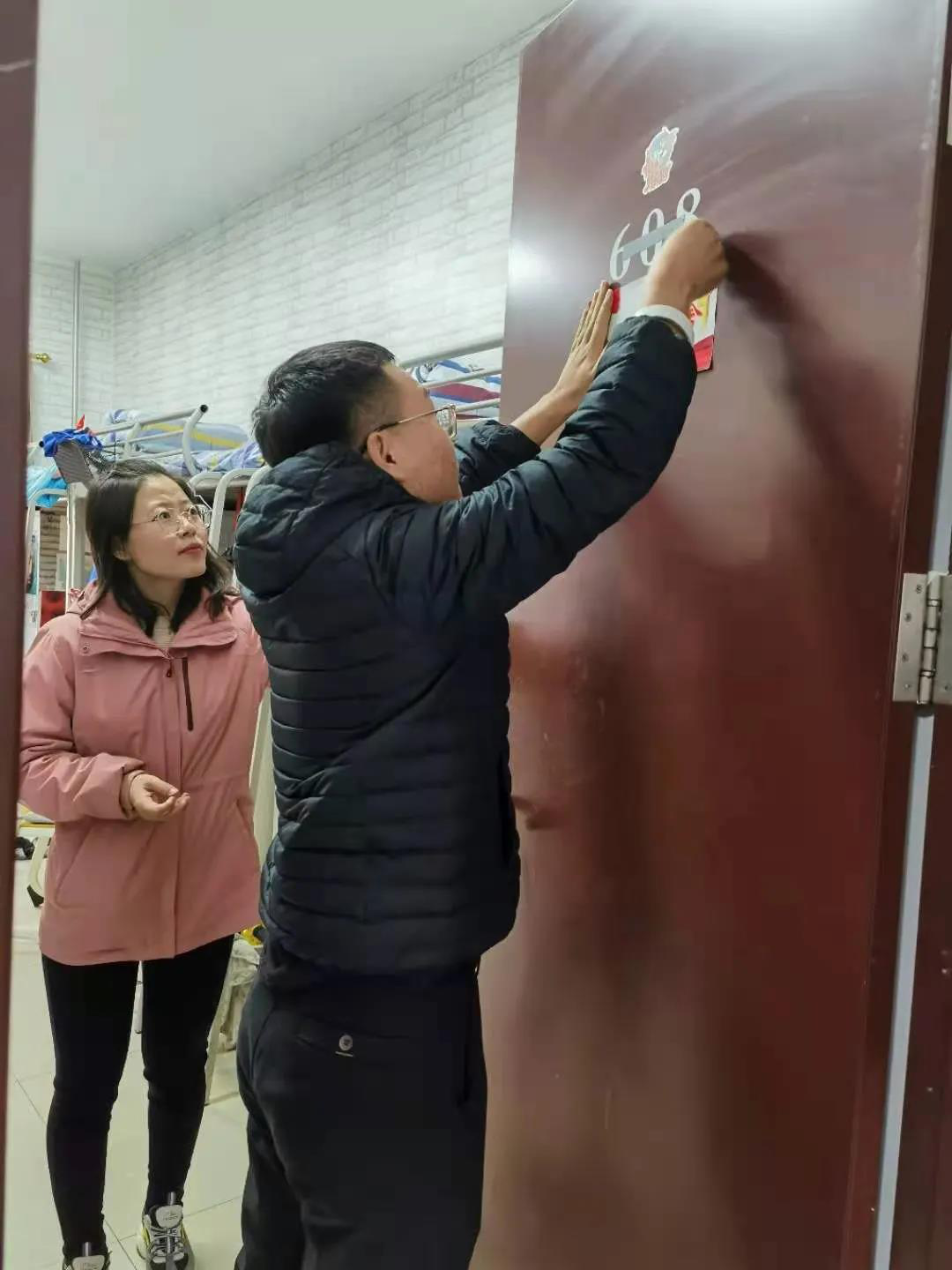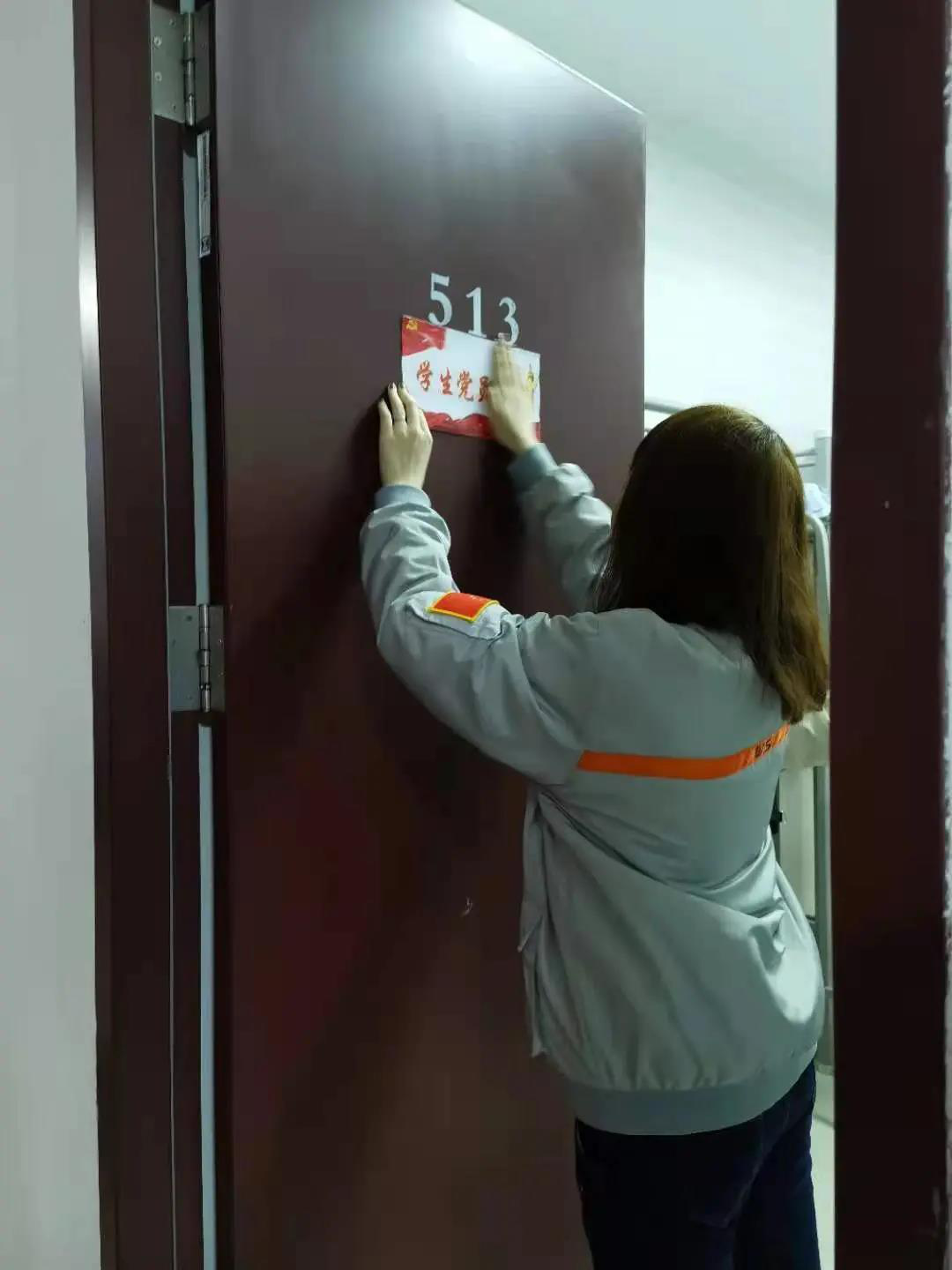 岳晓燕老师表示,在所有员工党员同志们的宿舍门上悬挂“员工党员宿舍”标示牌,其意义是时时刻刻提醒大家保持内务整洁,以身作则,遵守规矩,发挥党员先锋模范带头作用。党员同志们热情激昂、纷纷表示“牌子挂门上、责任扛肩上”。