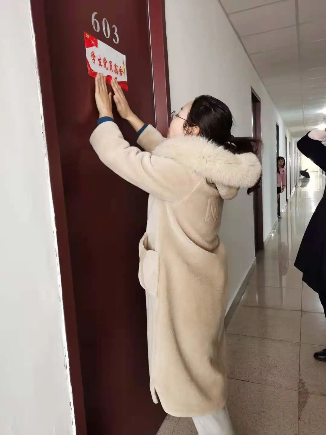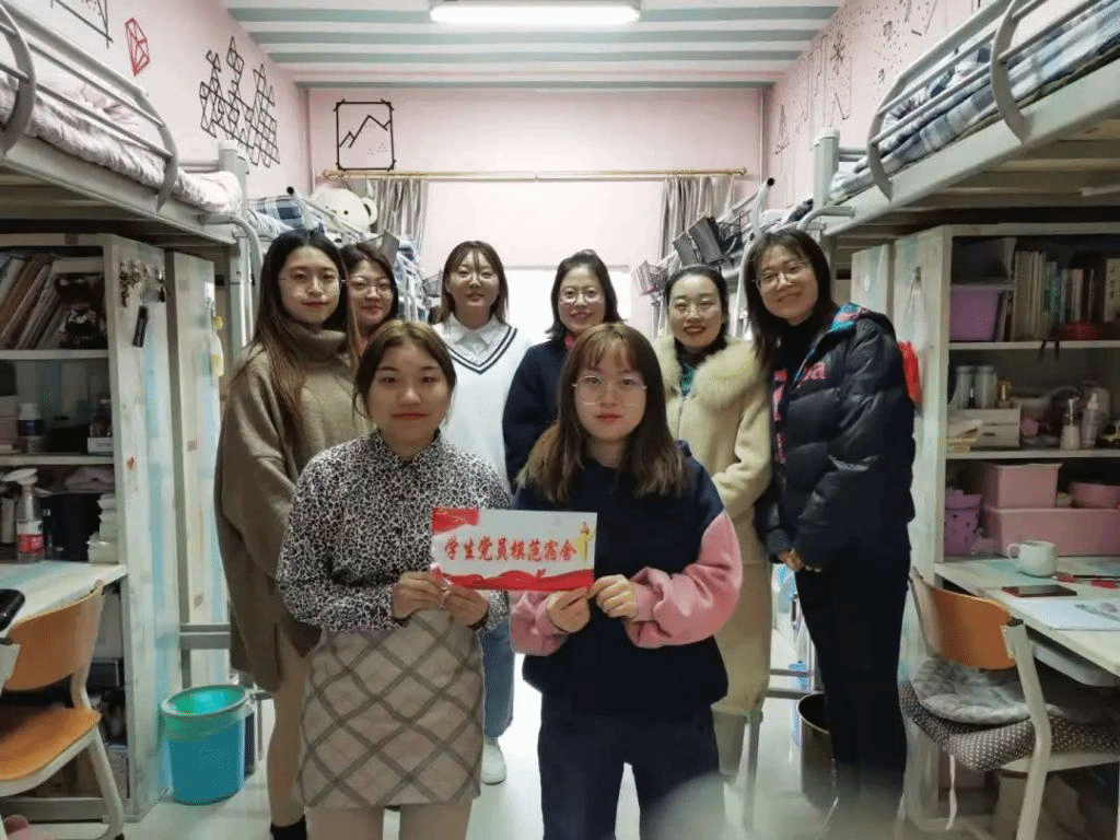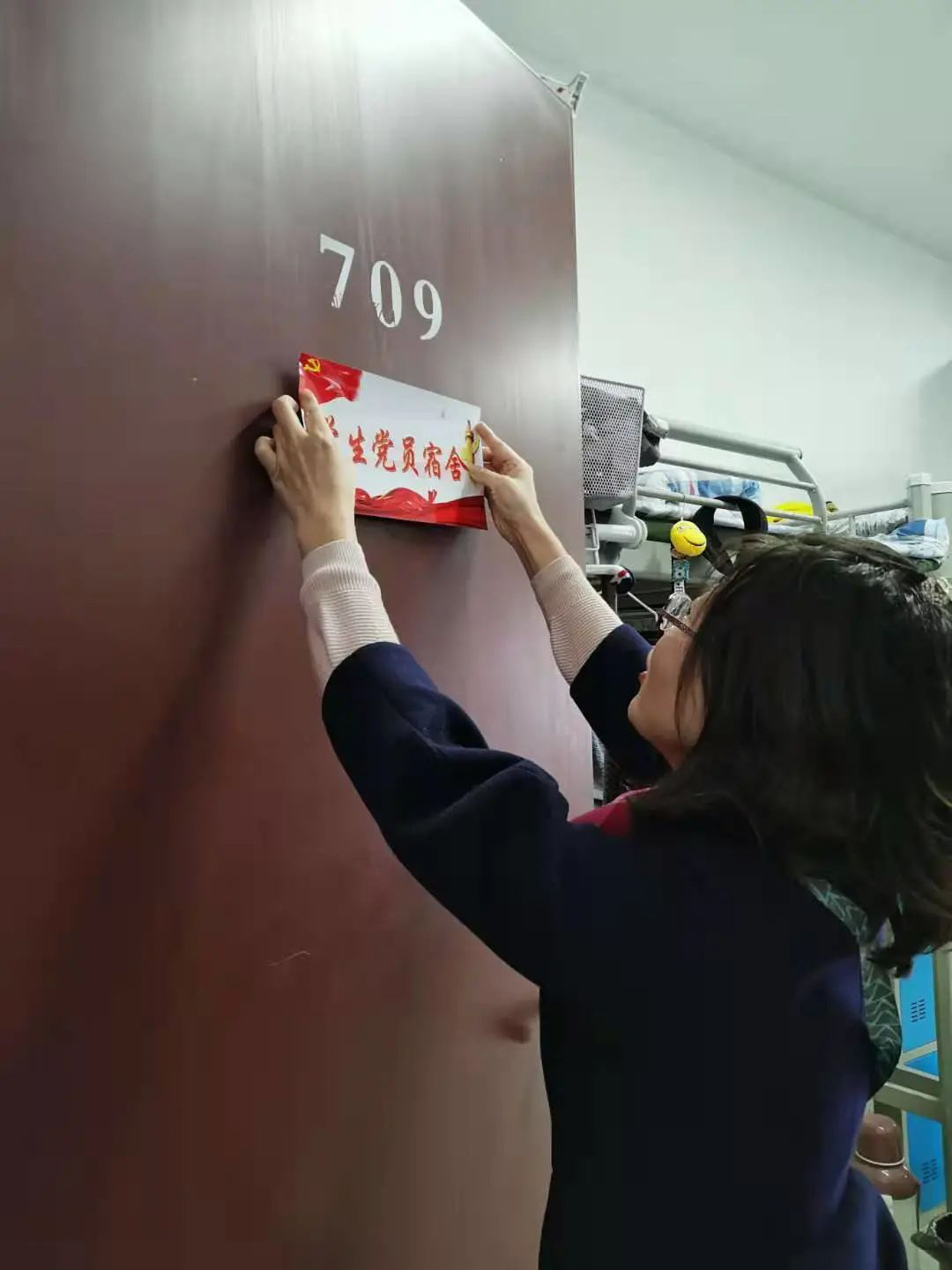 员工党支部书记书记岳晓燕和组织委员张名带领支部党员走进员工党员宿舍,检查卫生、安全等情况并一一挂牌;岳老师叮嘱大家,“员工党员宿舍”和“员工党员模范宿舍”不仅仅是一个标牌,更是一面旗帜。每一名党员要当好这面旗帜,将自己所在的宿舍建设成内务整洁、学风优良、服务奉献的模范型宿舍,引领其他宿舍成员向党员宿舍看齐。岳老师强调,全体员工党员要能够以身作则,切实履行好党员责任,发挥好模范带头作用。