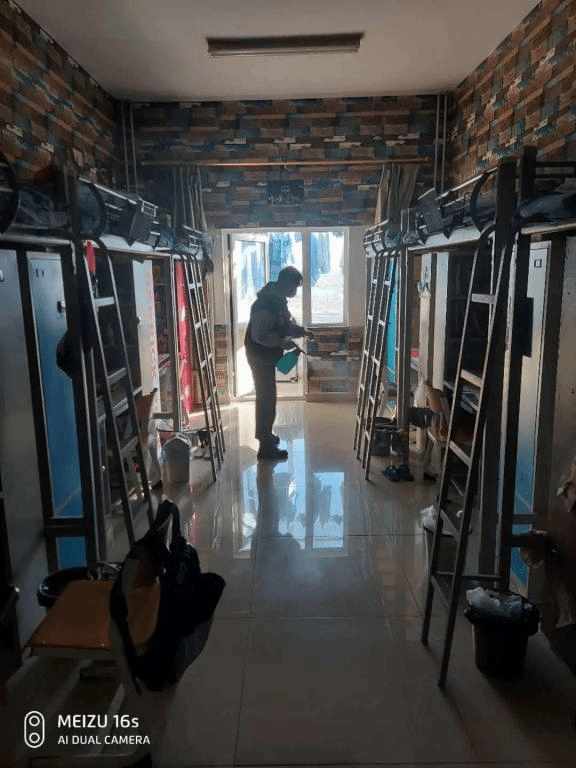 活动中,发展对象在员工党支部组织委员名老师的指导下,对本系员工宿舍的地面、柜子、床底、各个拐角、门把手等进行了全面彻底的消毒。之后,发展对象对楼道进行了消毒。