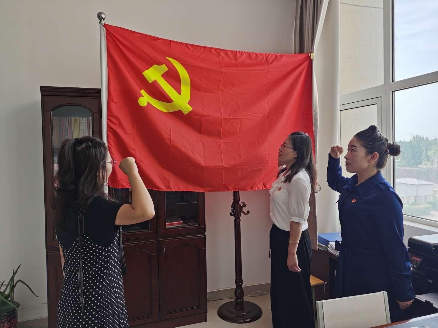 员工党支部组织委员张名老师带领预备党员宣誓、带领正式党员重温入党誓词。
