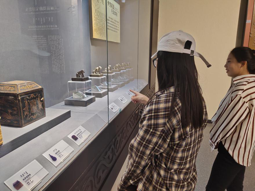 怀着崇敬而又激动的心情,一行人走进了鄂尔多斯蒙元文化展厅,解讲员对成吉思汗生平、蒙元疆域、蒙古族的信仰、文化等方面的内容进行了详细的讲解。使党员同志们全方位的了解了蒙元文化,更加深刻的认识到了民族团结的重要性。