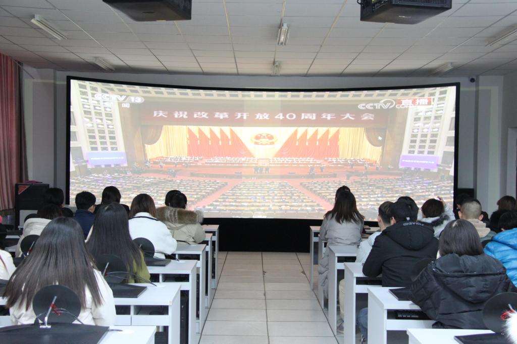 2018年12月18日上午10:00,在公司党委宣传部的统一领导安排下,我系党总支组织全系师生60余名,在二期化工楼113虚拟仿真实验室观看“庆祝改革开放40周年大会”现场直播。本次大会在人民大会堂举行,会议由中共中央政治局常委王沪宁主持。中共中央总书记、国家主席、中央军委主席习近平出席大会并发表重要讲话。出席会议的还有中共中央政治局常委李克强、栗战书、汪洋、王沪宁、赵乐际、韩正,国家副主席王岐山。
