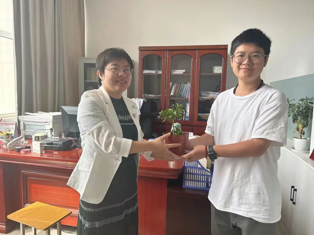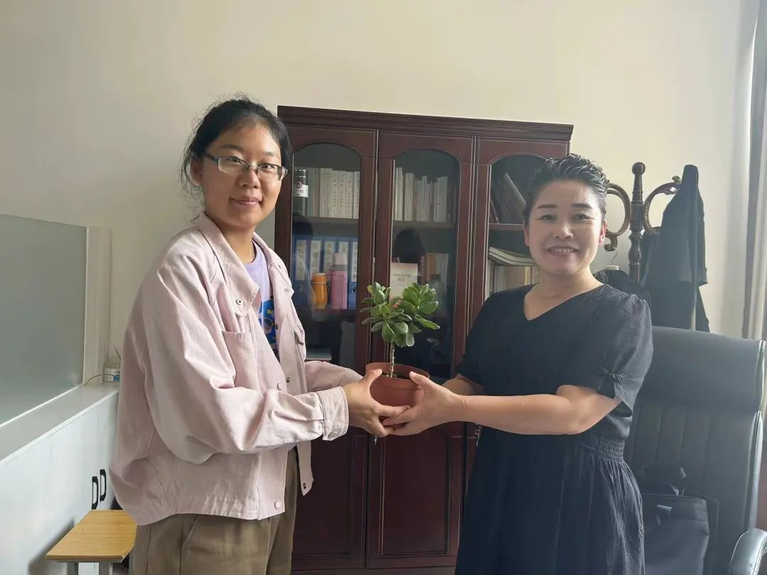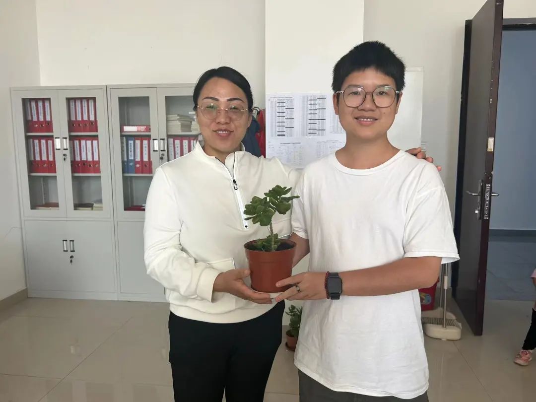 伴随着秋日的阳光,化学工程系第一期青马班学员走入化学工程系老师的办公室,将自己亲手移植的长寿花送给了可亲可敬的老师。“老师,您辛苦了。祝您教师节快乐”在学员们的问候声中,老师们激动的接过花盆,感动的热泪盈眶。