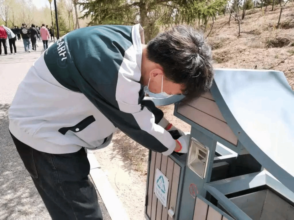 活动伊始,同学们在公司图书馆集合,员工会统一发放手套、塑料袋以及志愿者绶带后,列队前往天骄公园。大家一路上兴致高昂,有说有笑。到达天骄公园后,老师们简单的布置了工作任务后没大家就行动了起来。公园小路两旁的塑料袋、空瓶子、废纸、烟头……都被师生们一一捡起来扔到了垃圾桶里。