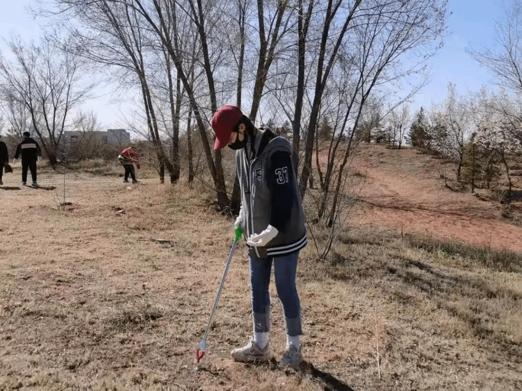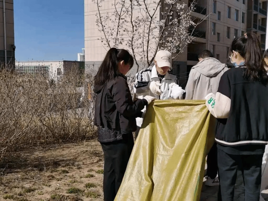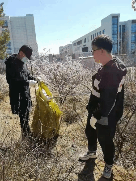 同学们迎着和煦的春风积极参加到美化校园志愿服务活动中,3人一组,5人一群,自动分工协作。人群中不时还传出阵阵欢声笑语,微风中忙碌的身影与迎风挺立的树木构成一幅和谐美丽的画卷。经过一番劳做,操场、2号3号4号宿舍楼区域以及东南边的小树林变得干干净净。