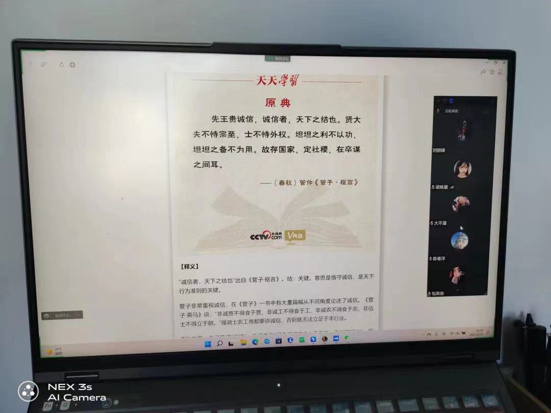 为教育引导员工讲诚信、树诚信、践诚信,培养新时代老员工弘扬诚信文化,争做诚信员工,2022年5月27日,化学工程系组织各班召开了诚信教育主题云班会。