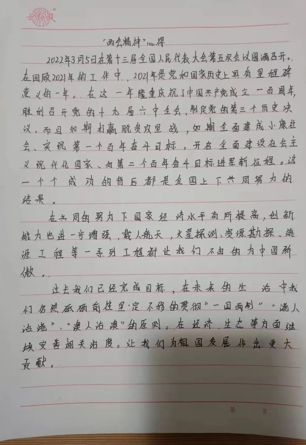 大家纷纷表示,要深入学习贯彻两会精神,坚定理想信念、牢记神圣使命,把会议精神落实到学习中,为实现中华民族伟大复兴贡献自己的力量。