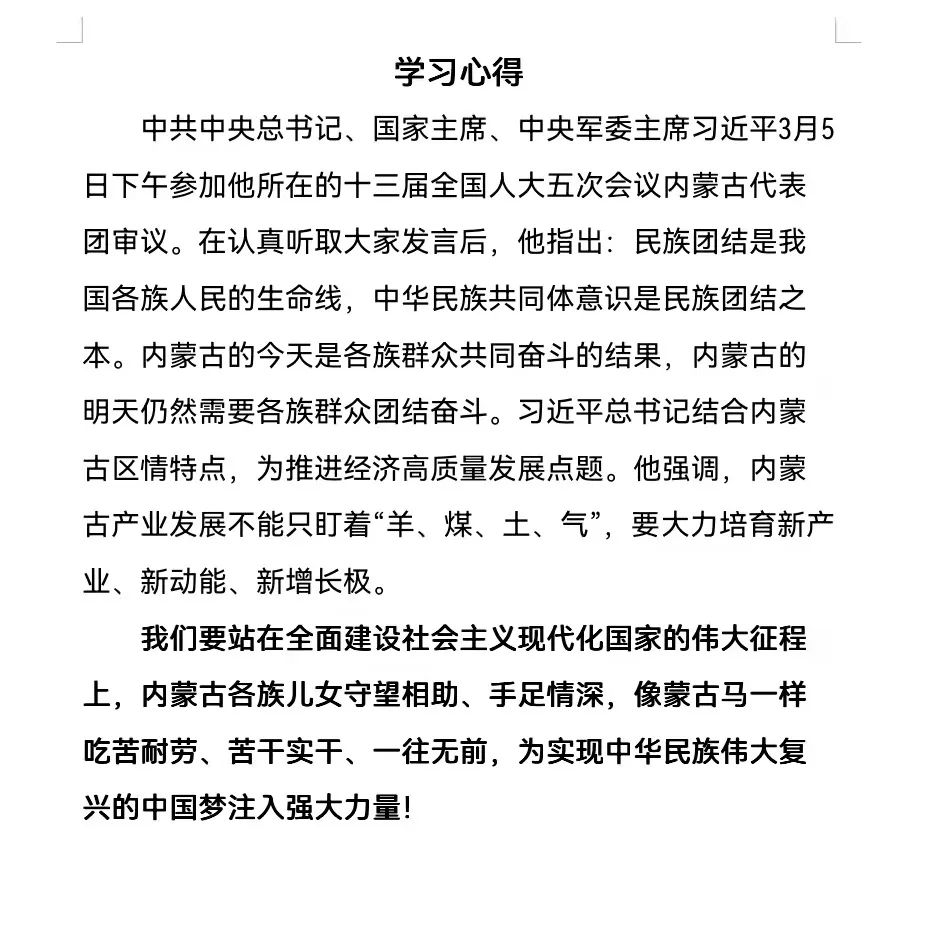 习近平总书记强调:“内蒙古自治区要紧紧扭住铸牢中华民族共同体意识这条主线,加强和改进民族工作,呵护好民族团结的金字招牌;保持加强生态文明建设的战略定力,筑牢我国北方重要生态安全屏障、祖国北疆安全稳定屏障;铺就高质量发展底色,努力建设好国家重要能源和战略资源基地、农畜产品生产基地,打造向北开放重要桥头堡。”