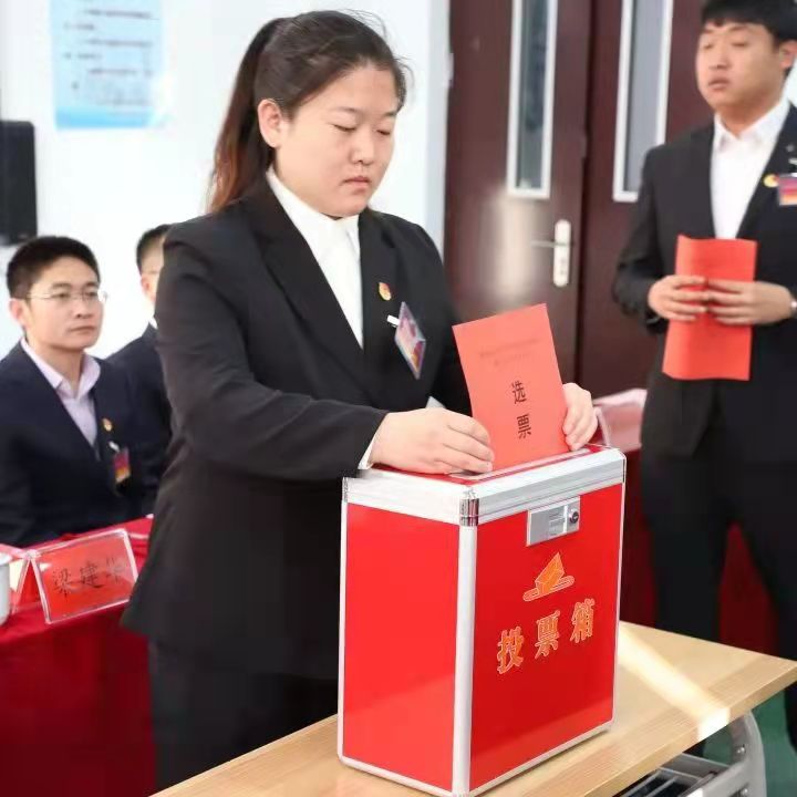 随后各位代表对员工委员会委员进行公开选举。代表们按照选举办法,根据选举规则,投上了神圣庄严的一票。