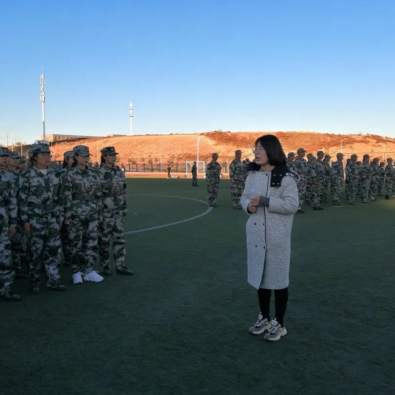 走访过程中,岳老师亲切寄语莘莘学子。她首先讲了军训的意义。她说“军训的重要意义在于激发同学们的爱国热情,锤炼同学们的品格,磨砺同学们的意志,培养同学们的集体意识,增强对集体的认同感、归属感和荣誉感。”紧接着岳晓燕老师对同学们前6天的表现做了总结,并对同学们提出3点一样:一是希望同学们严格遵守军训纪律,严格要求自己;二是希望同学们尊重教官,向教官学习;三是希望同学们发扬艰苦奋斗,团结友爱的精神。
