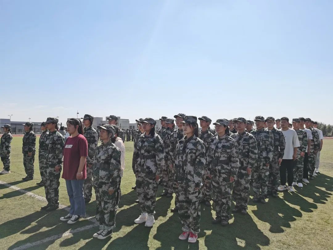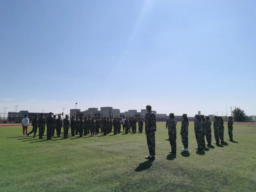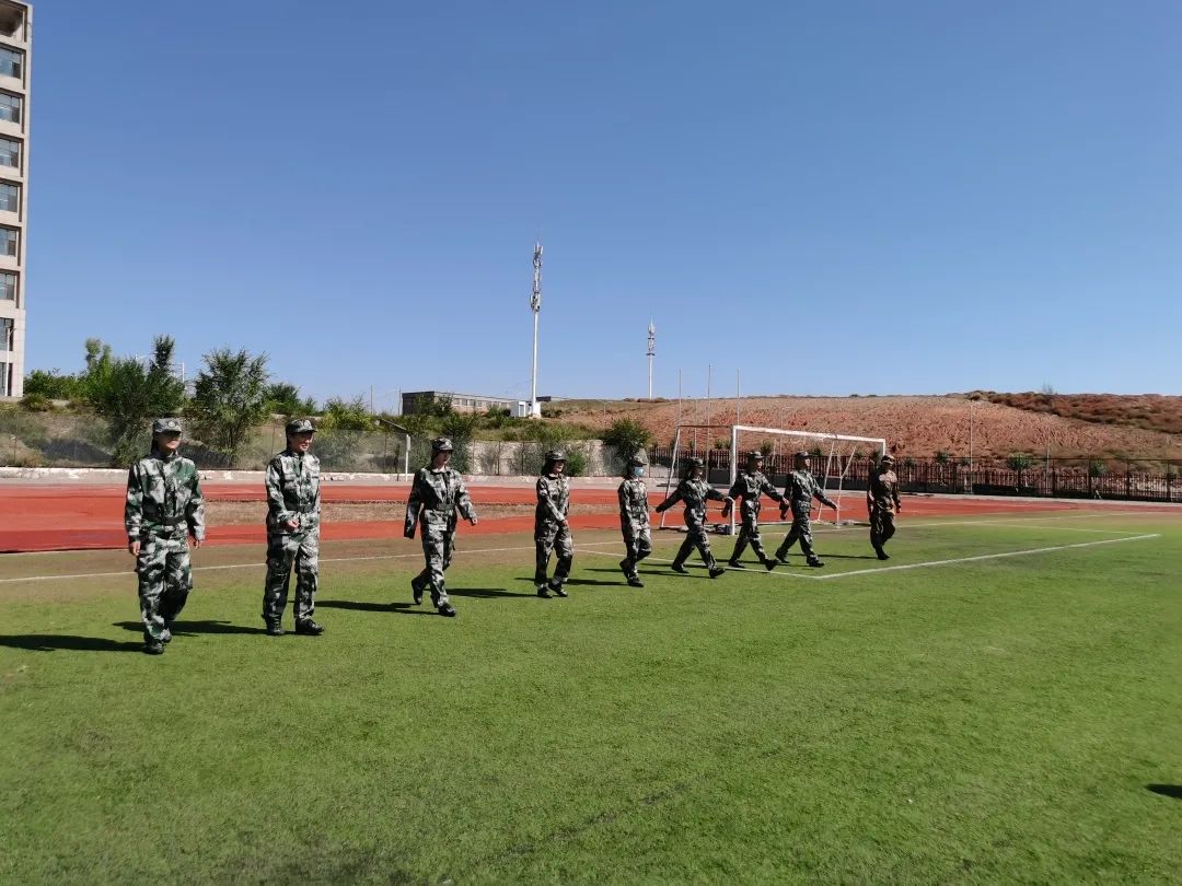 内务整理结束后,各班以班级为单位在操场进行队形训练。大家身着迷彩服,挺胸抬头,在国旗护卫队队员以及退伍军人的指导下,完成着“看齐、列队、集中”等等的训练。