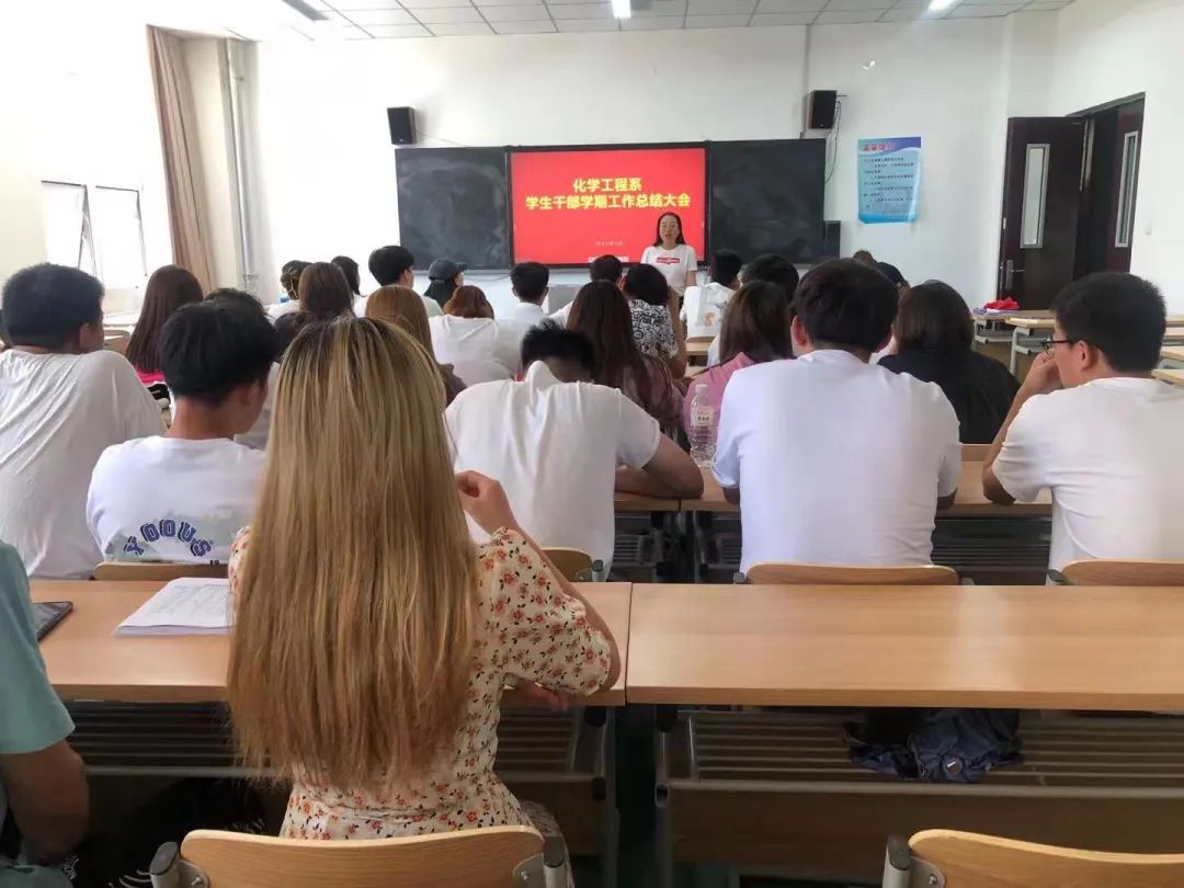 临近期末,一学期即将在炎炎夏日中结束。为进一步提高化工系员工干部的综合素质,增强化工系员工干部自我教育、自我管理、自我服务的意识,及时总结这半年来员工干部的工作经验和所学所获,化学工程系于2021年7月9日14:00在化工楼109教室组织开展本学期员工干部工作总结会议。系辅导员张名老师及50余名员工干部参加此次会议。