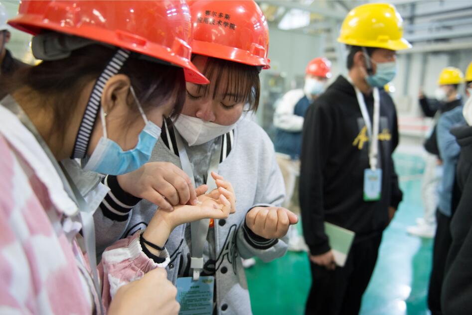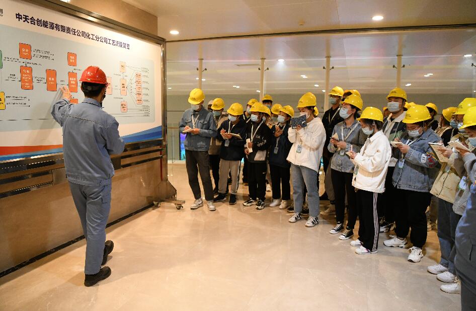 2020级化工及应用化学专业的同学,处于大学一年级第二学期阶段,正是基础知识扎实、向往专业知识的求知阶段,来到中天合创后感到很震撼。工厂工程师的讲解让同学们对化工厂有了初步的认识。参观过程中,同学们对生产工艺、生产设备有了较为详细的了解,对生产过程的各个环节充满好奇,与现场工程师深入进行了交流与探讨。