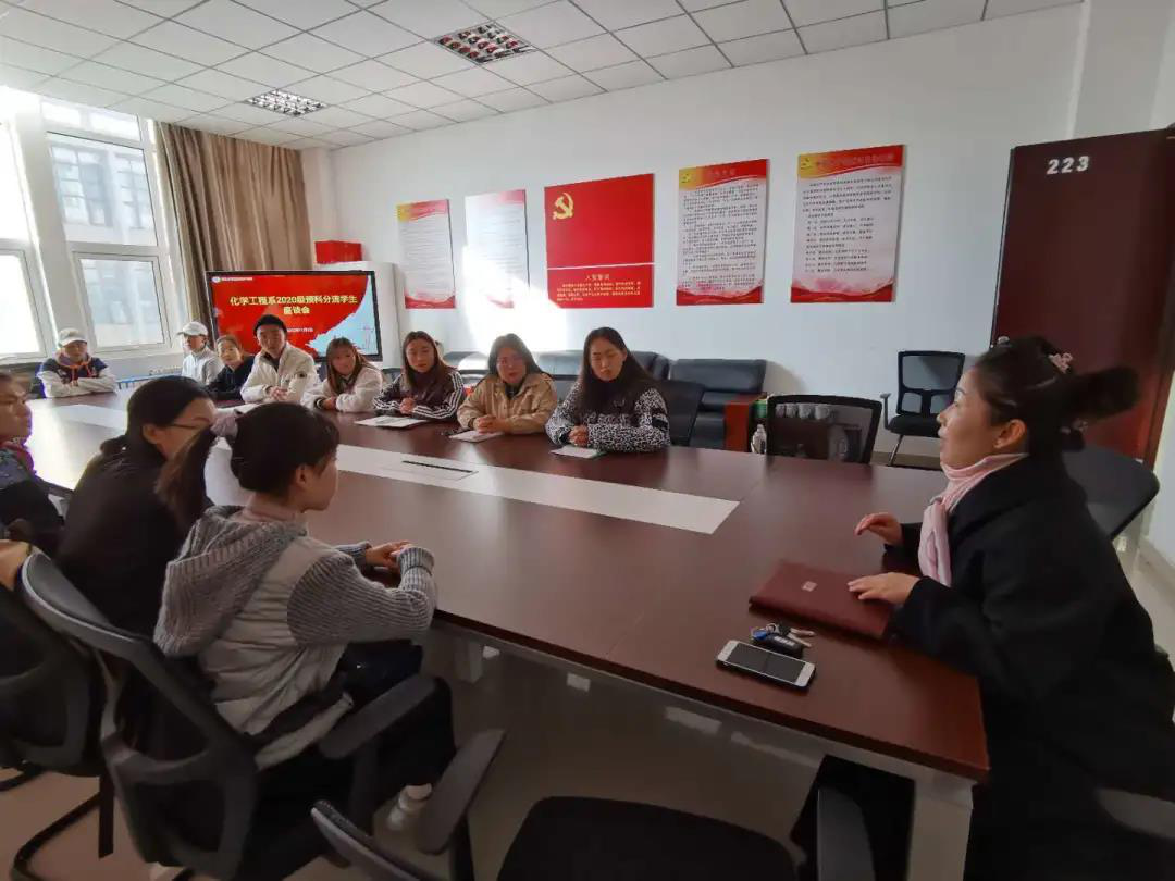 11月2日上午9:00,化学工程系在223会议室召开2020级预科分流员工座谈会。系党总支书记梁建华老师和预科分流15名员工参加了此次座谈。