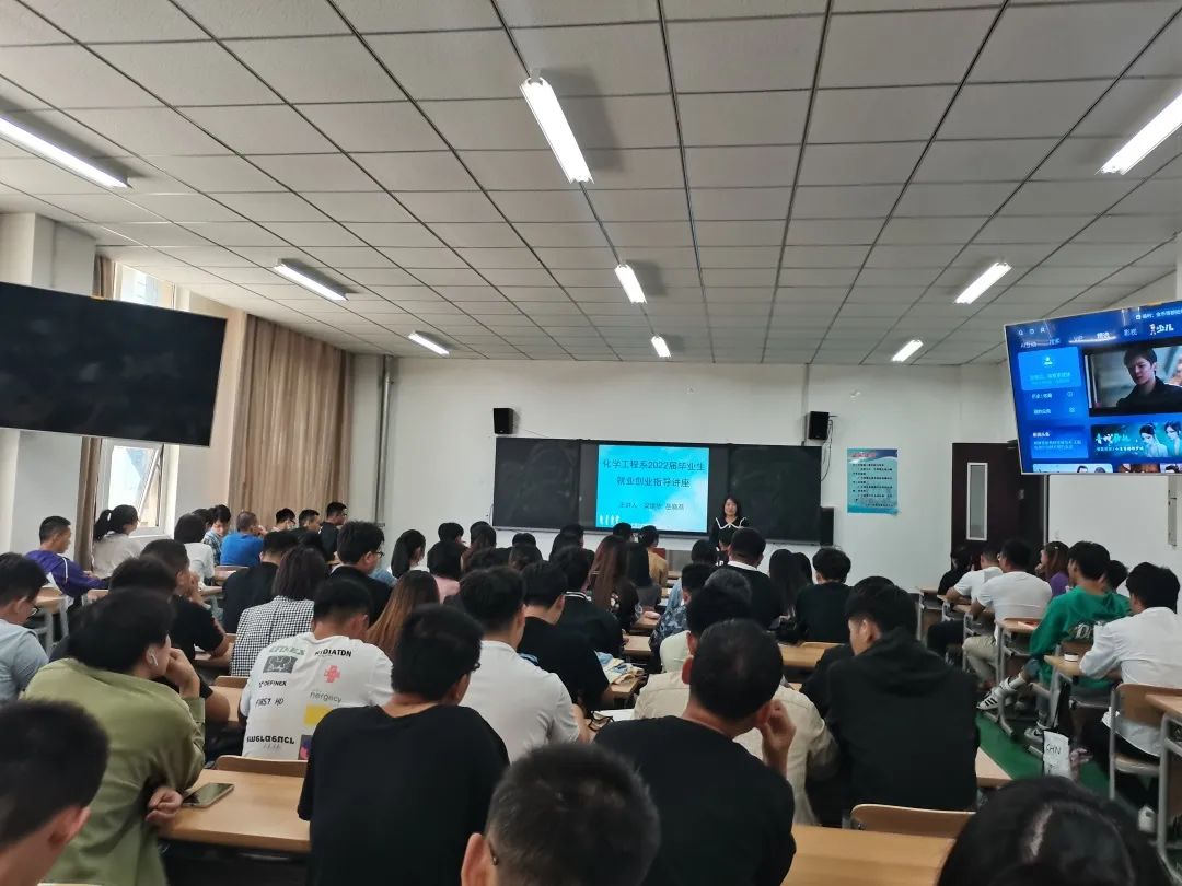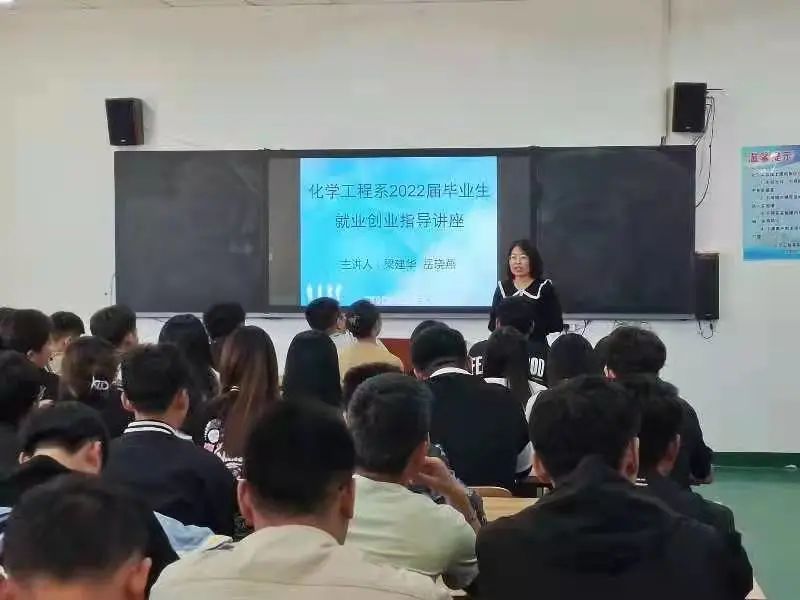 9月16日下午,化工系在化工楼109教室举办2022届毕业生就业与创业指导讲座。系党总支书记梁建华、学工办主任岳晓燕主讲,2022届全体毕业生参加。