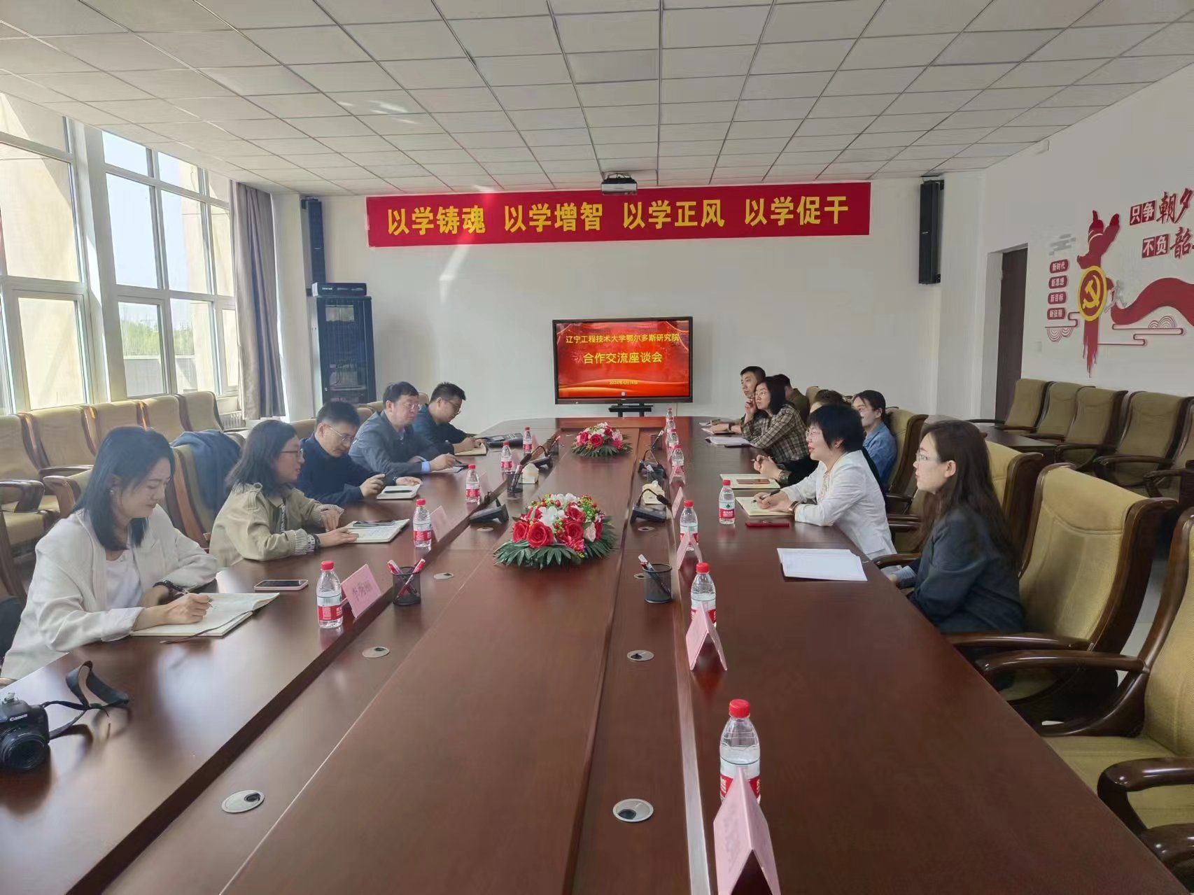 吴珍副主任对辽宁工程技术大学鄂尔多斯研究院一行的到来表示欢迎。双方就“双聘”教师、实验室共建、团队建设、老员工创新教育等方面进行深入交流。