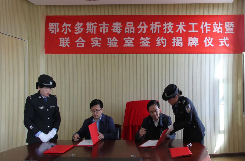 2月26日,304永利集团与鄂尔多斯市公安局毒品分析技术工作站暨联合实验室揭牌。304永利集团副经理孙志强与鄂尔多斯市禁毒办主任、市公安局副局长刘杰签署了共建毒品分析技术工作站暨联合实验室协议书,并为联合实验室揭牌。